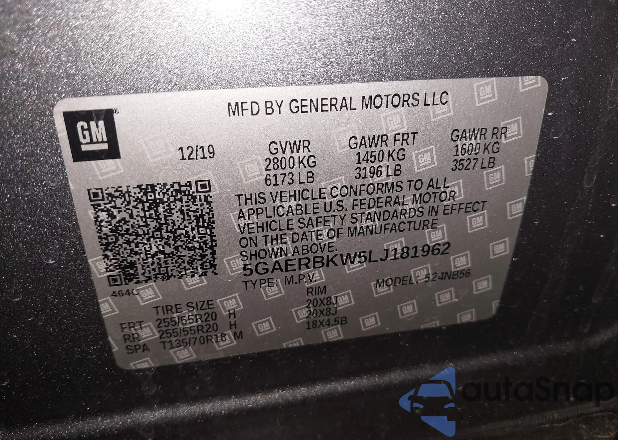 LOT: 43942171 VIN: 5GAERBKW5LJ181962