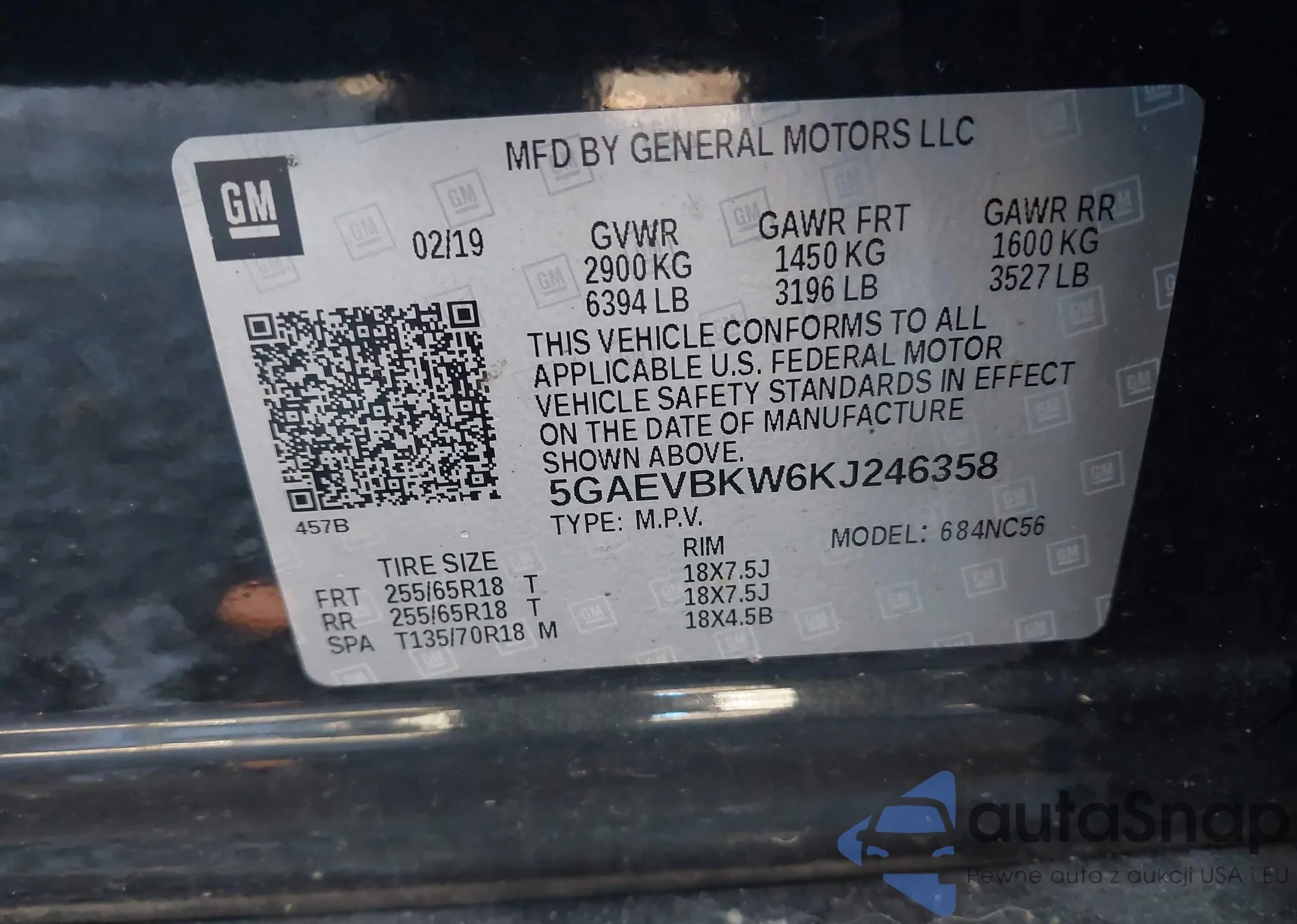 LOT: 44223873 VIN: 5GAEVBKW6KJ246358