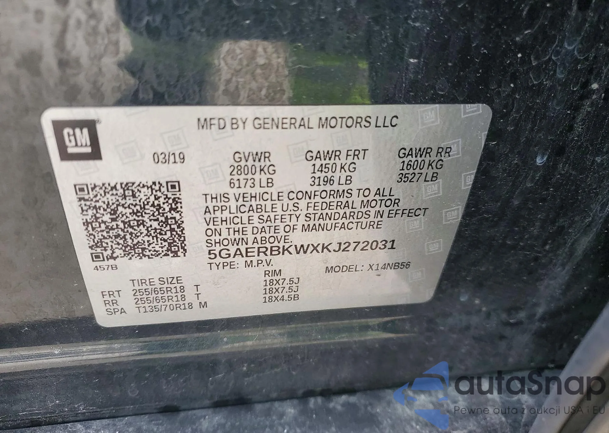 LOT: 72476355 VIN: 5GAEVBKWXKJ314158