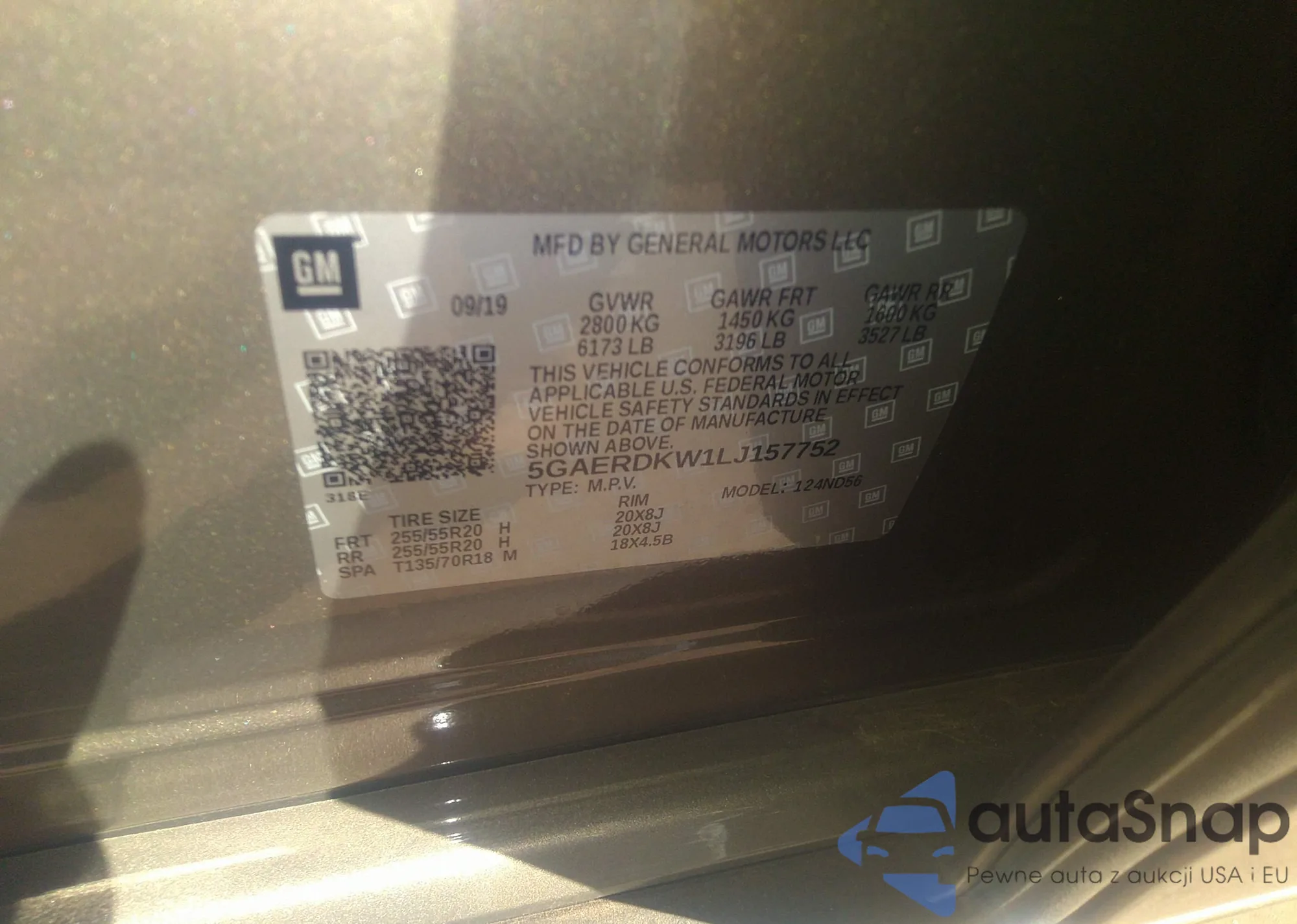 • VIN 5GAERDKW1LJ157752