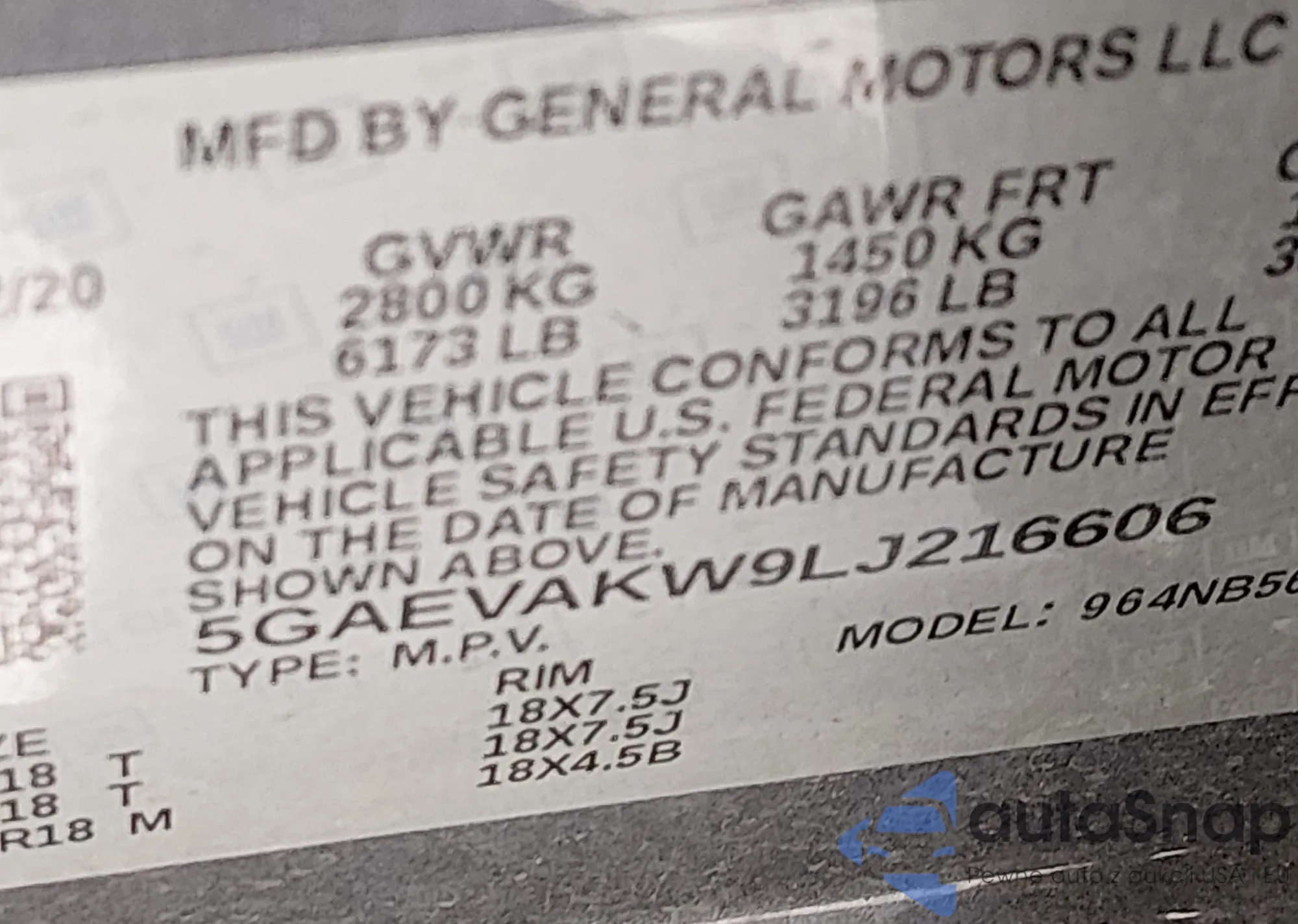 • VIN 5GAEVAKW9LJ216606
