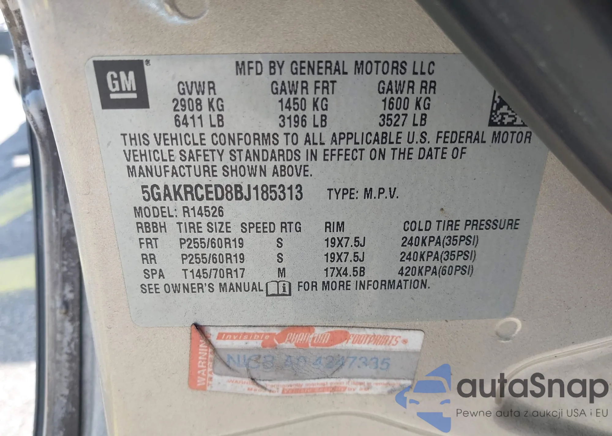 • VIN 5GAKRCED8BJ185313