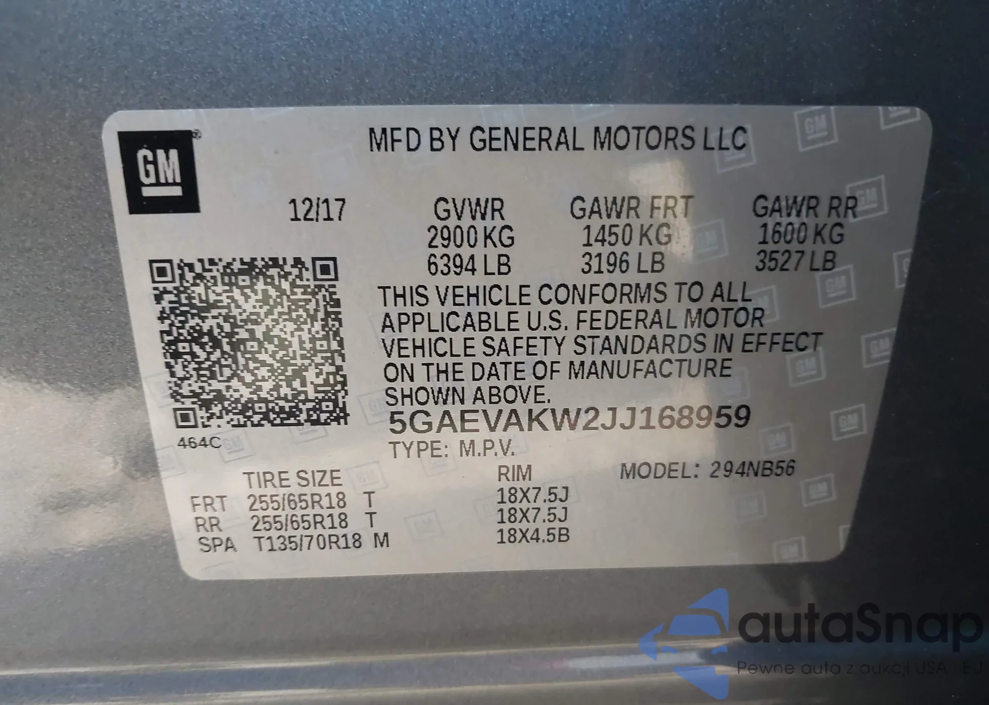 LOT: 44527675 VIN: 5GAEVAKW2JJ168959