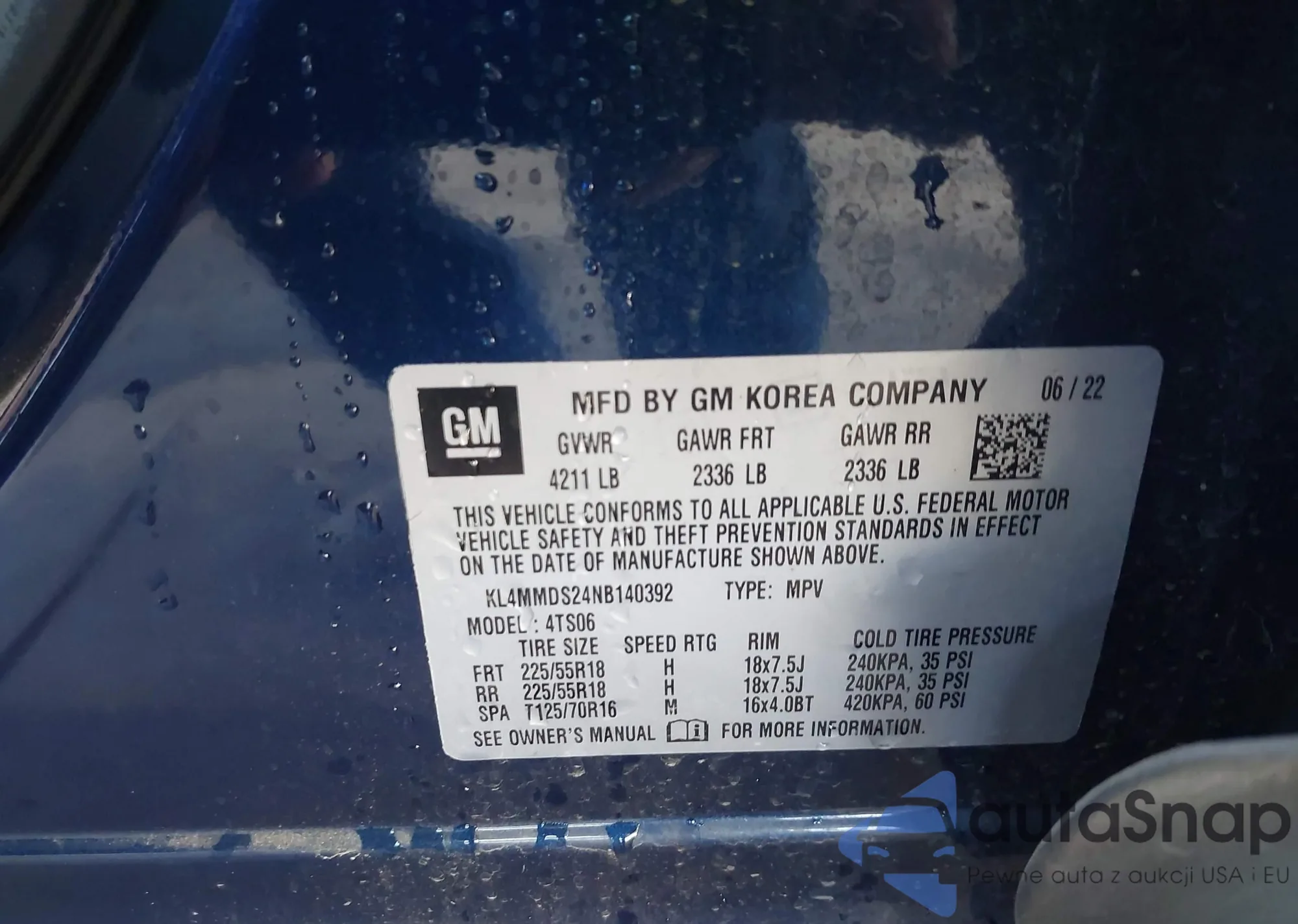 • VIN KL4MMDSL6MB178956