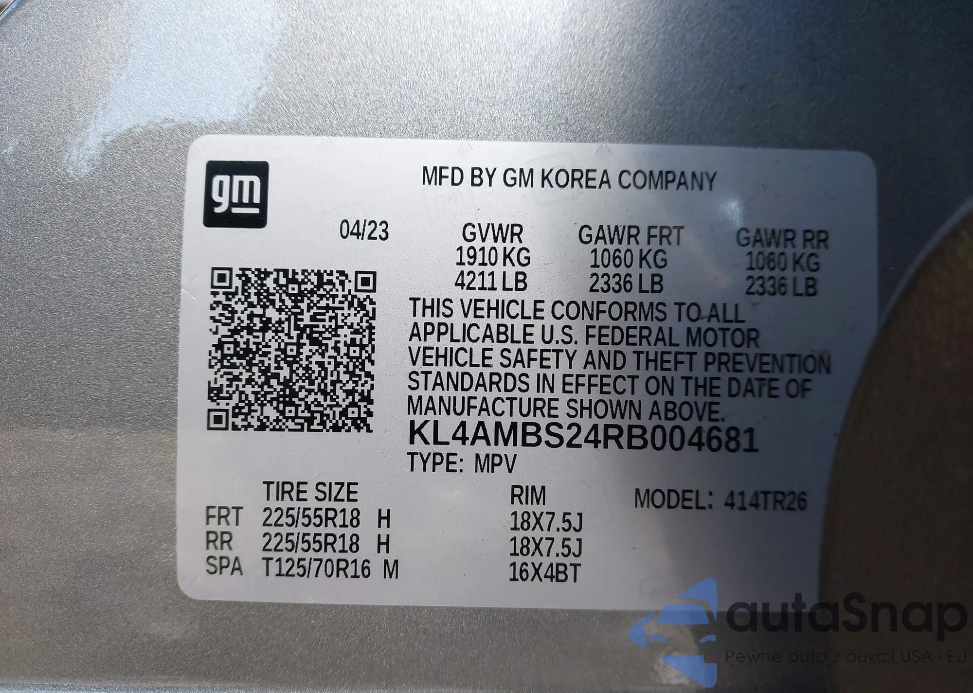 • VIN KL4MMDSL4PB058626