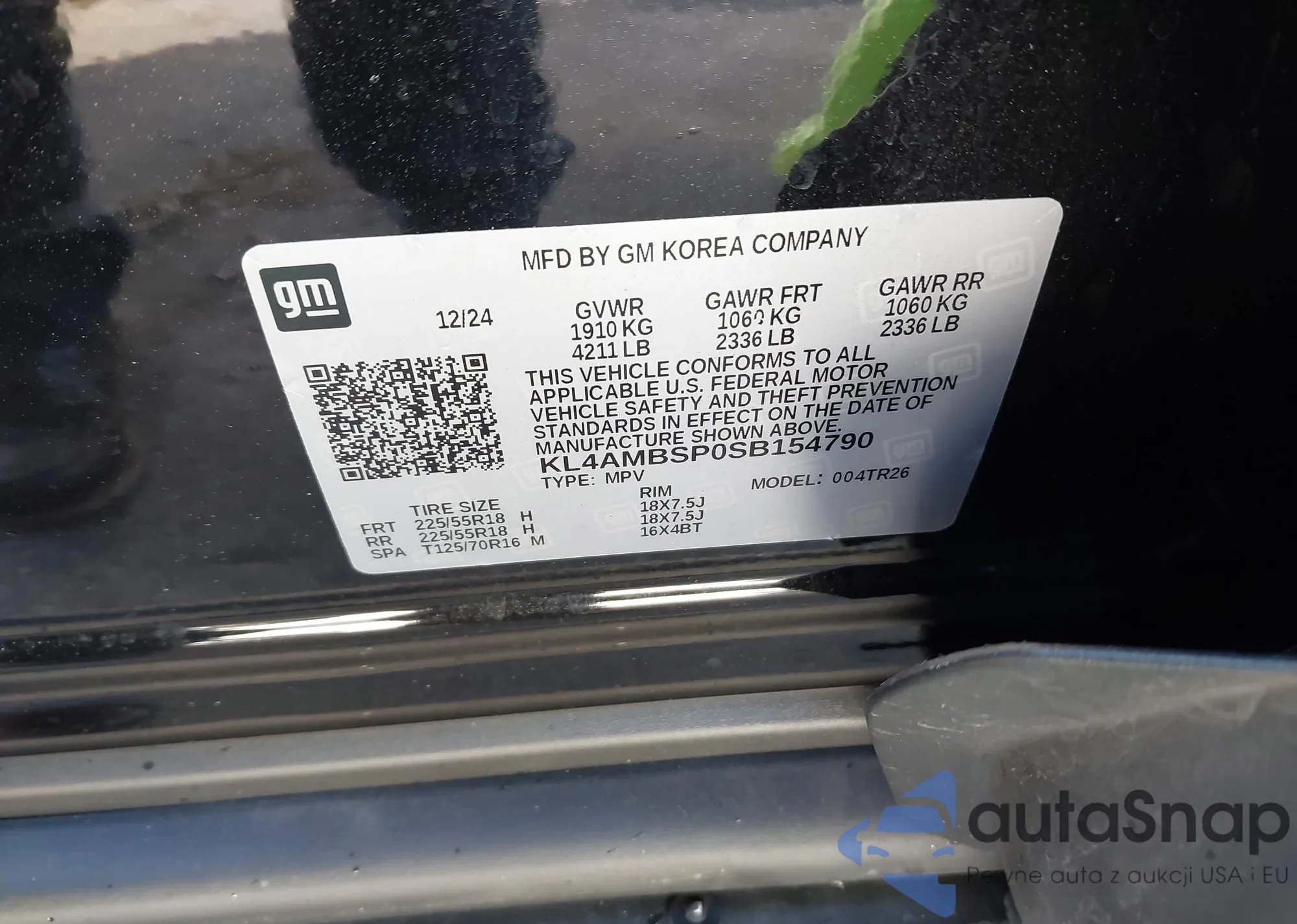 • VIN KL4AMBSP0SB154790