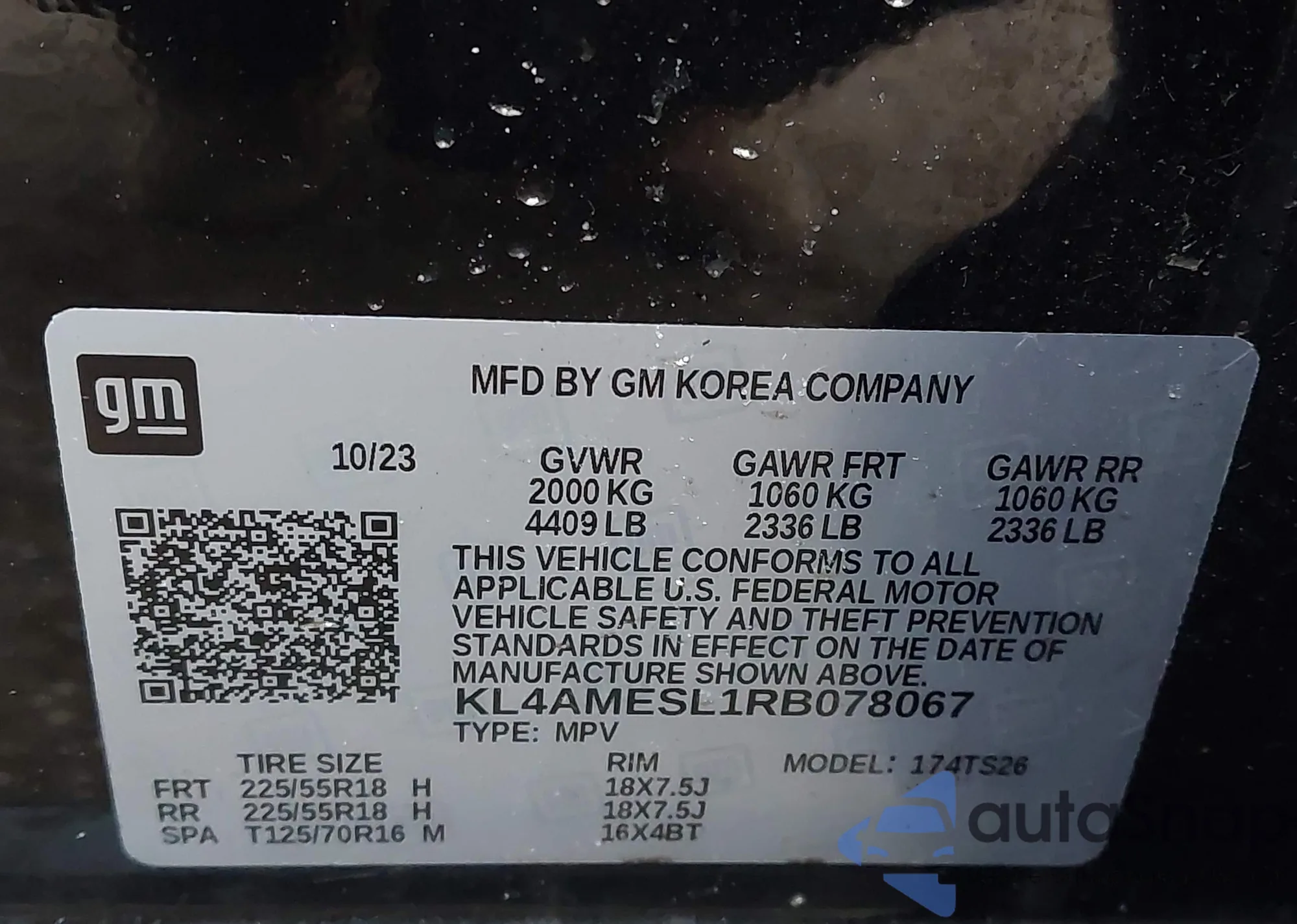 • VIN KL4AMESL1RB078067