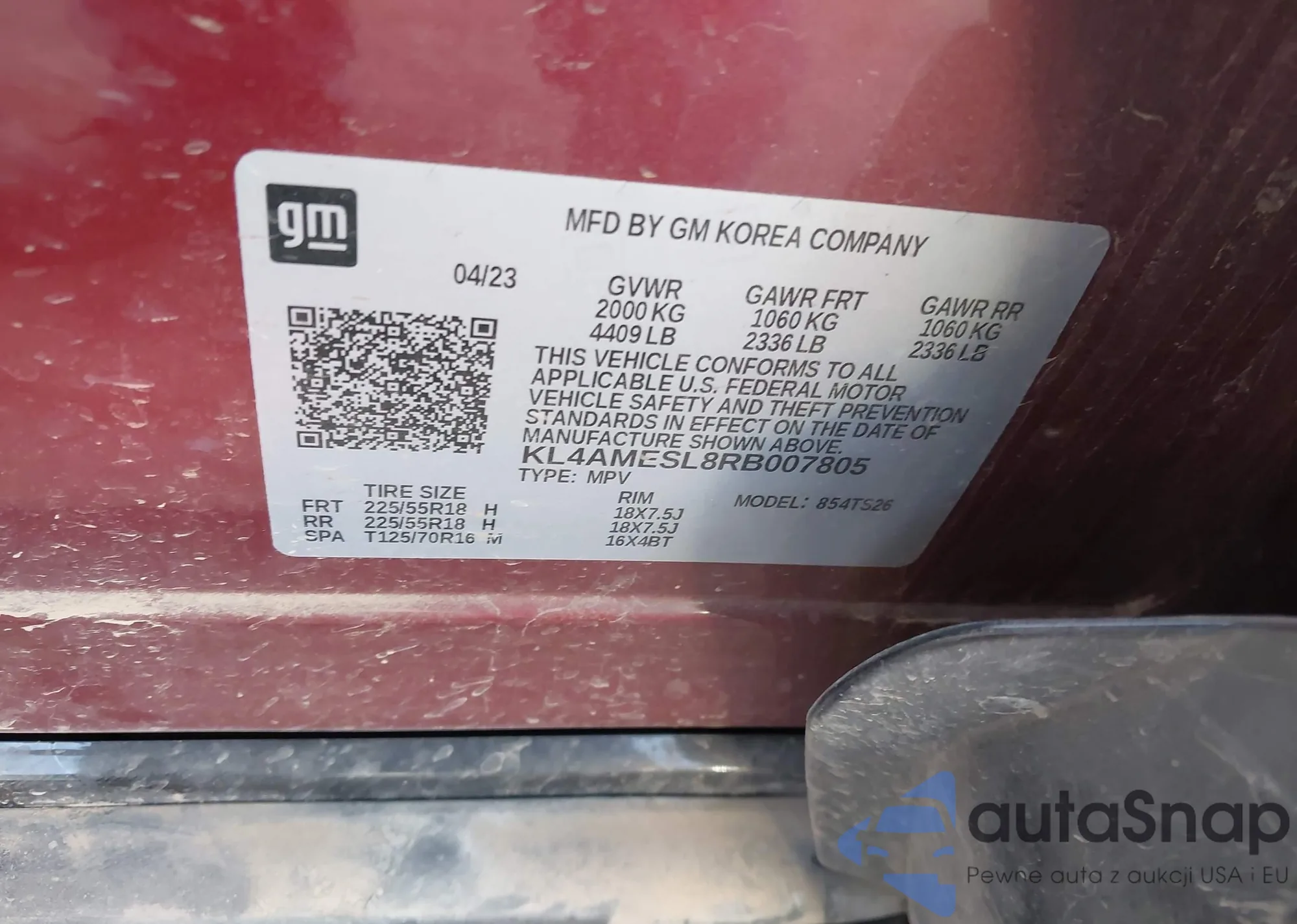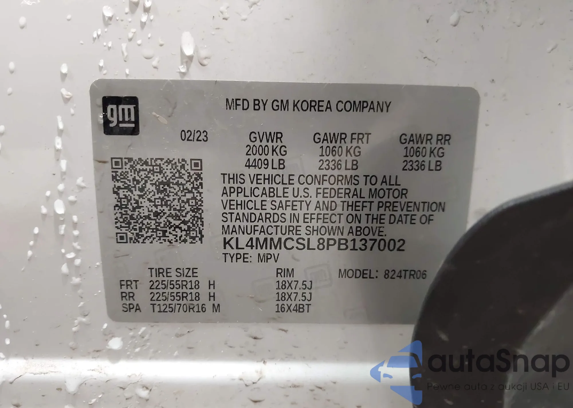 • VIN KL4MMCSL8PB137002
