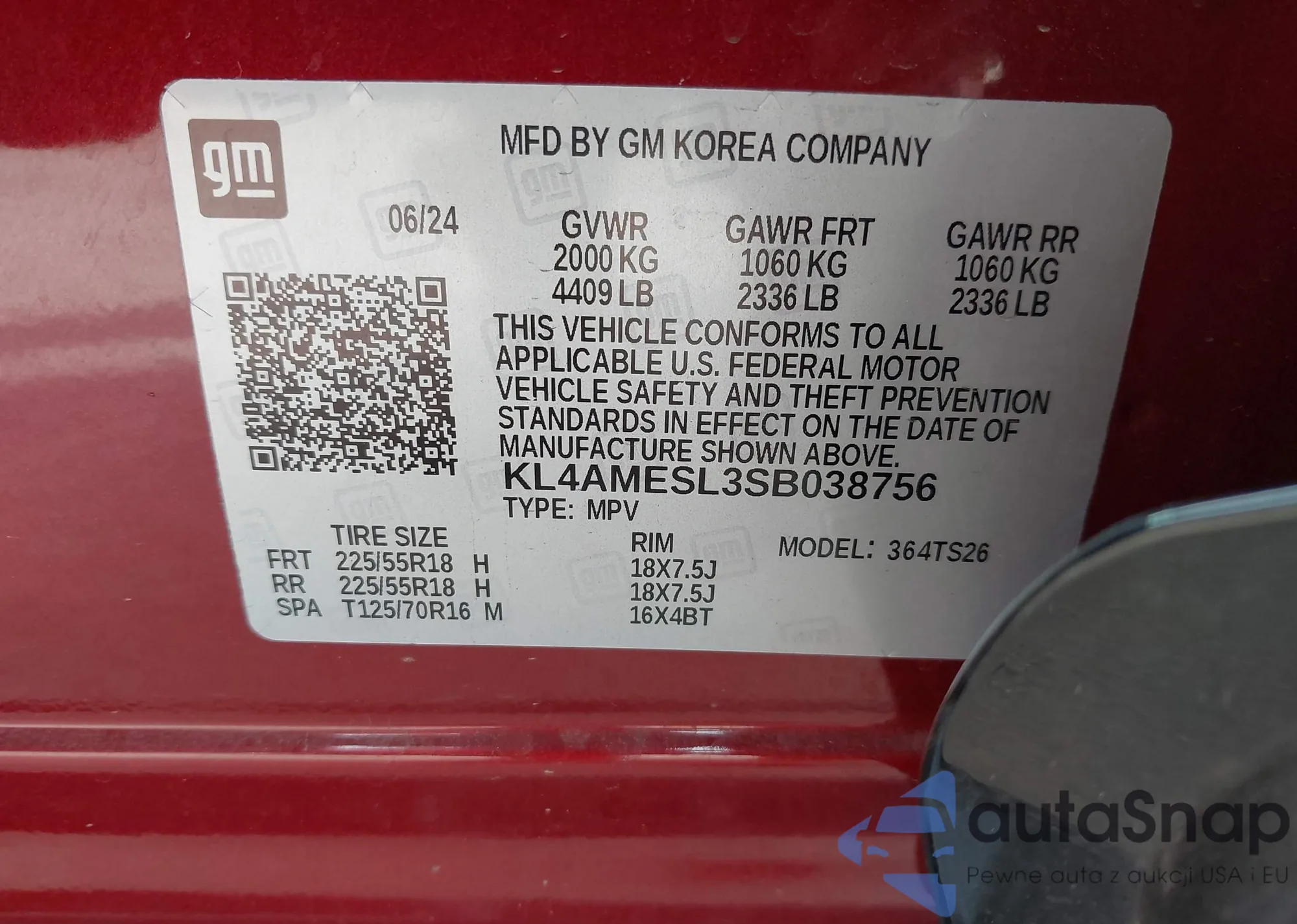 LOT: 44096197 VIN: KL4AMESL3SB038756