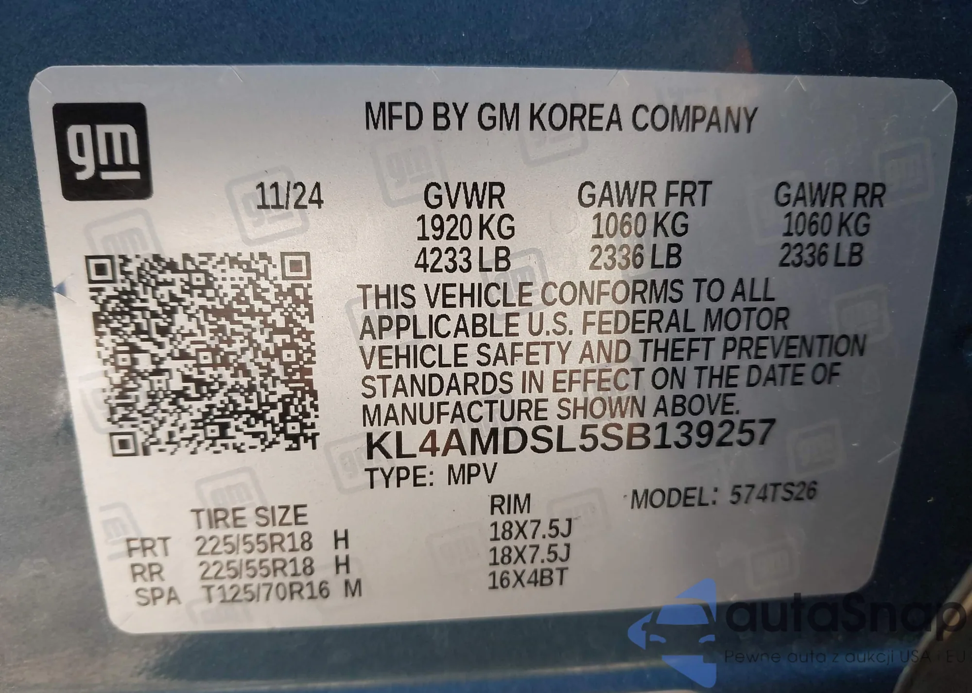 • VIN KL4AMDSL5SB139257