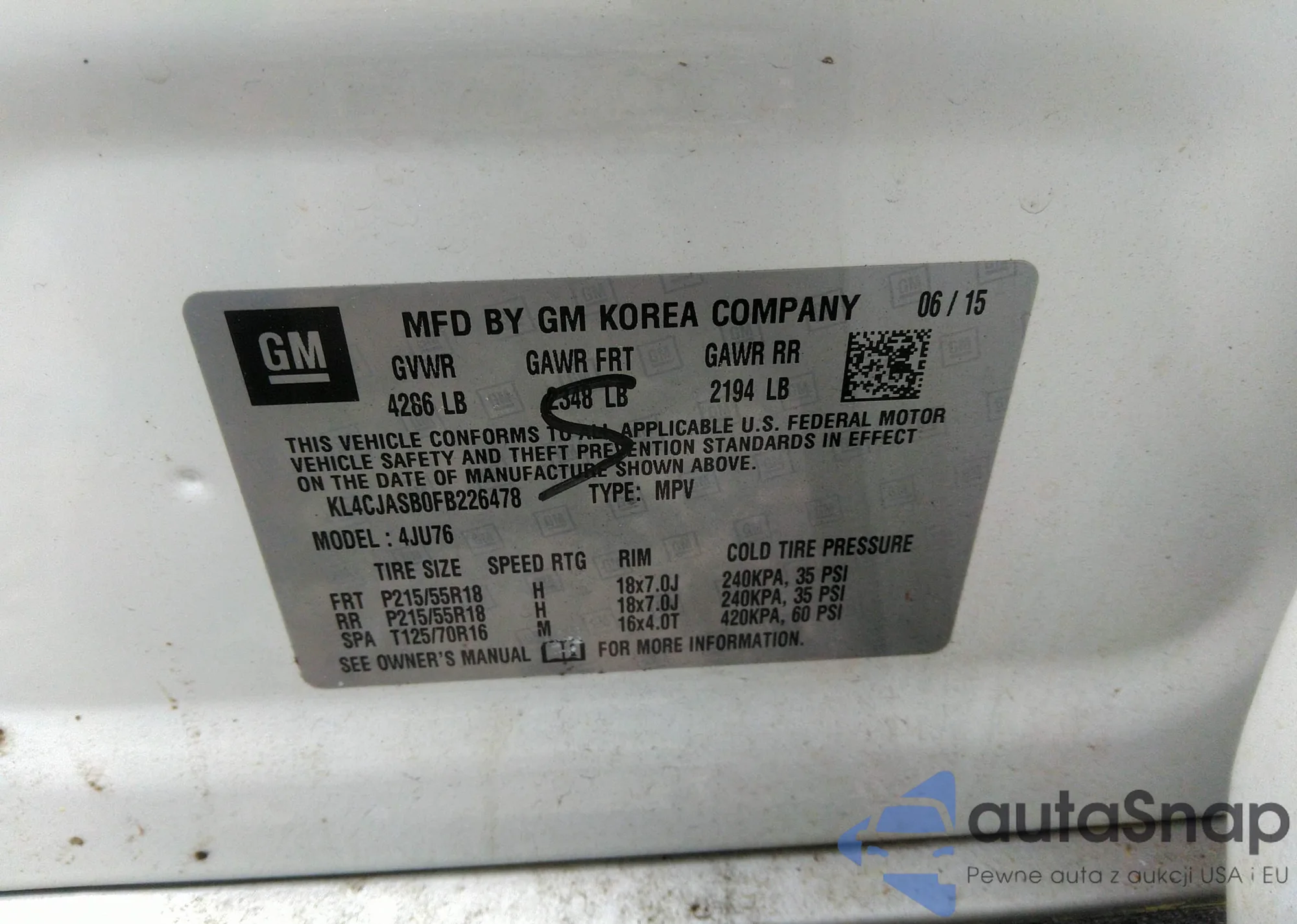 • VIN KL4CJASB0FB226478