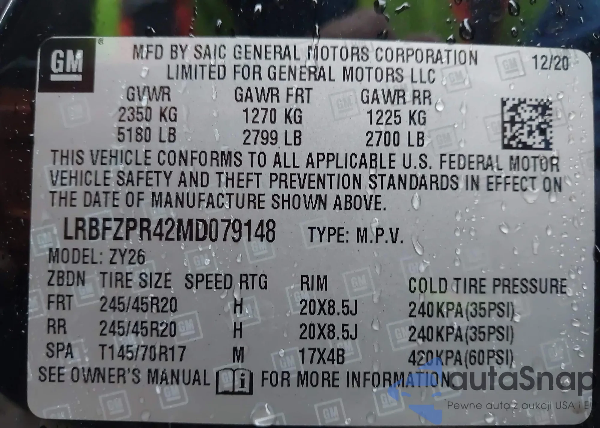 LOT: 41921976 VIN: LRBFZPR42MD079148