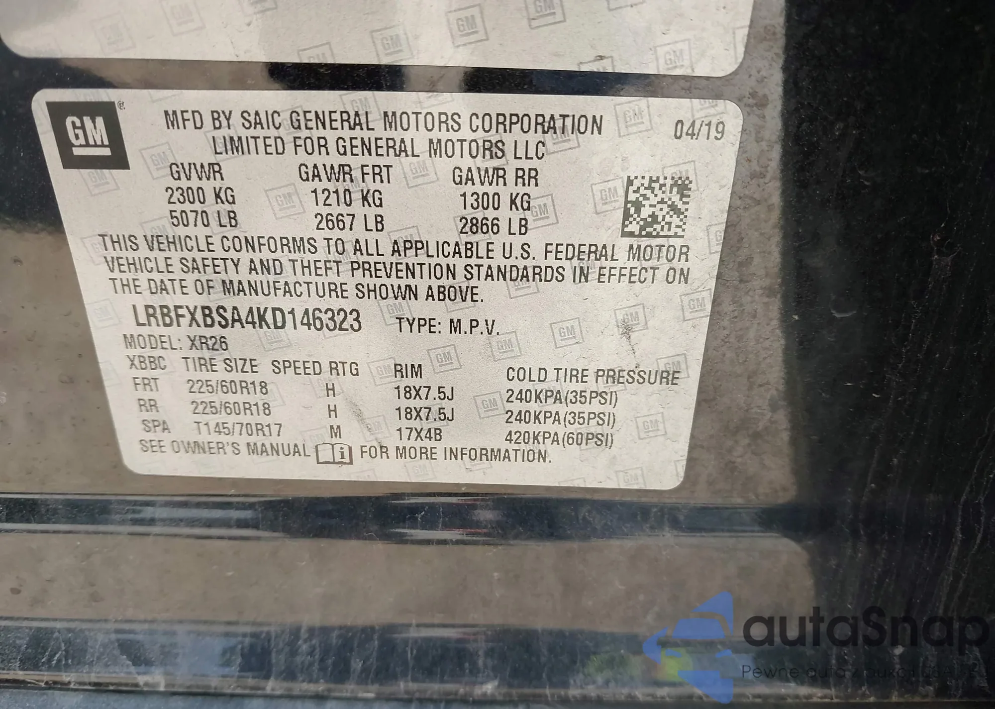 LOT: 42182268 VIN: LRBFXBSA4KD146323