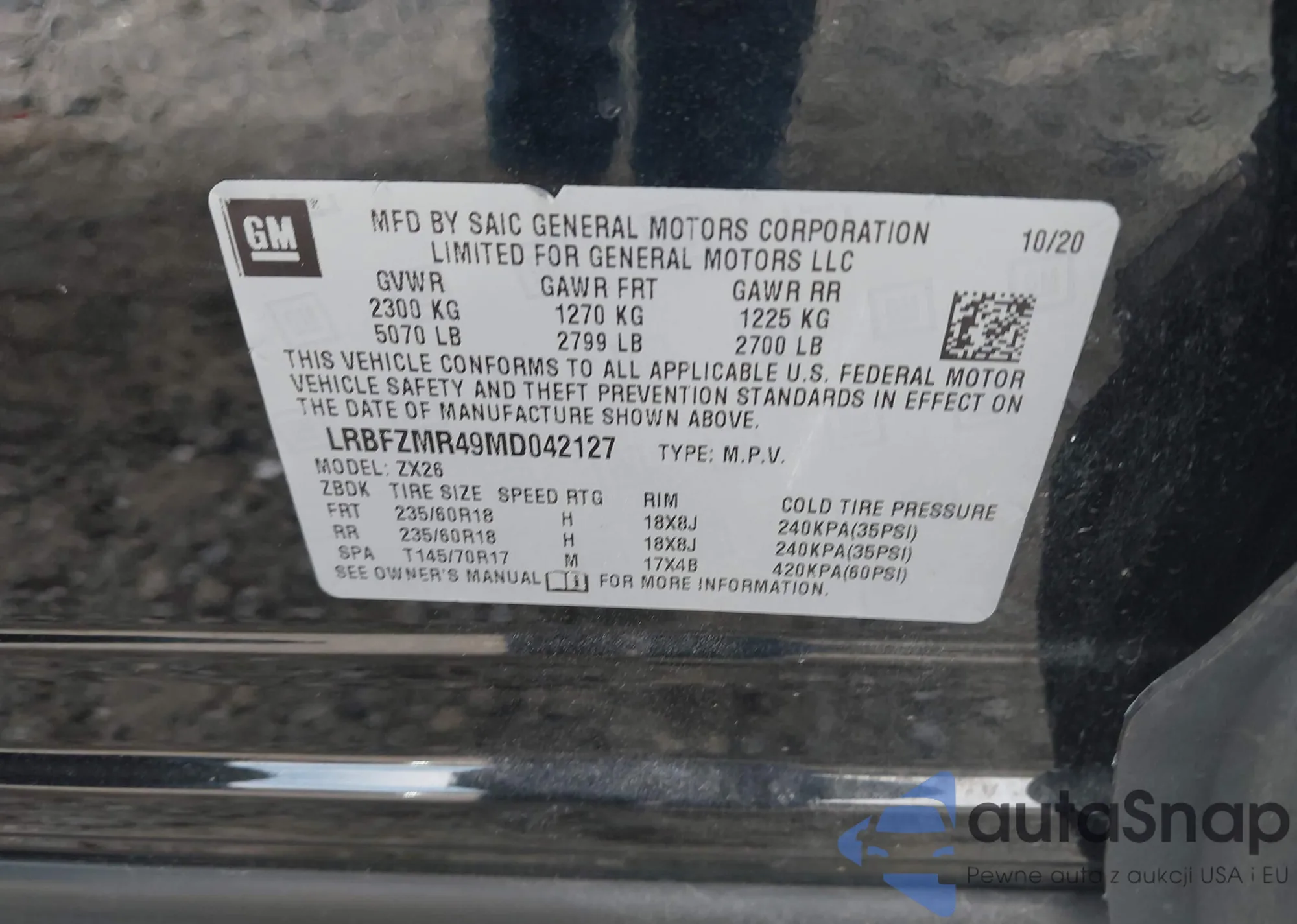 LOT: 44267333 VIN: LRBFZMR49MD042127