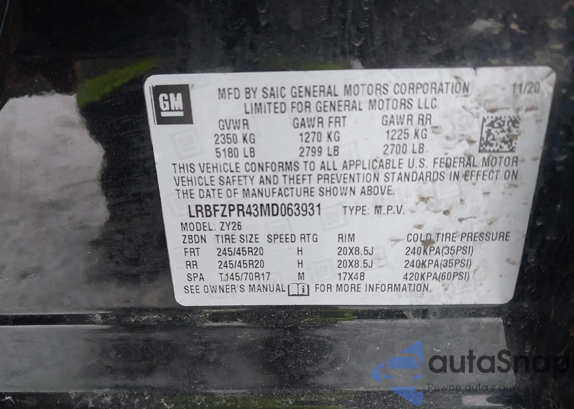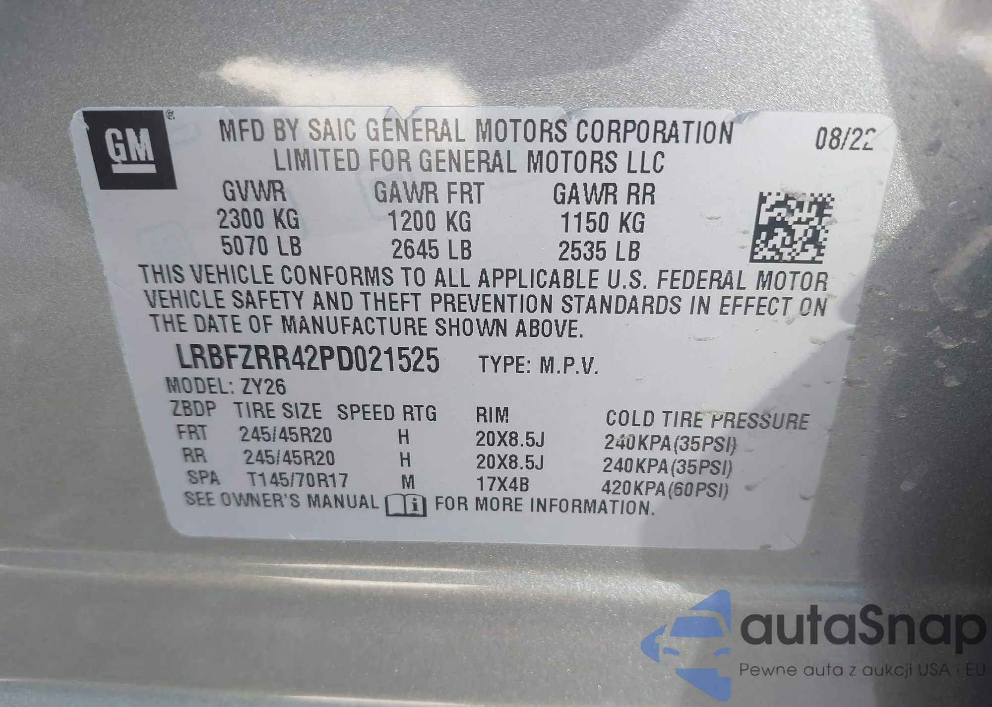 LOT: 44277076 VIN: LRBFZPR43MD063931