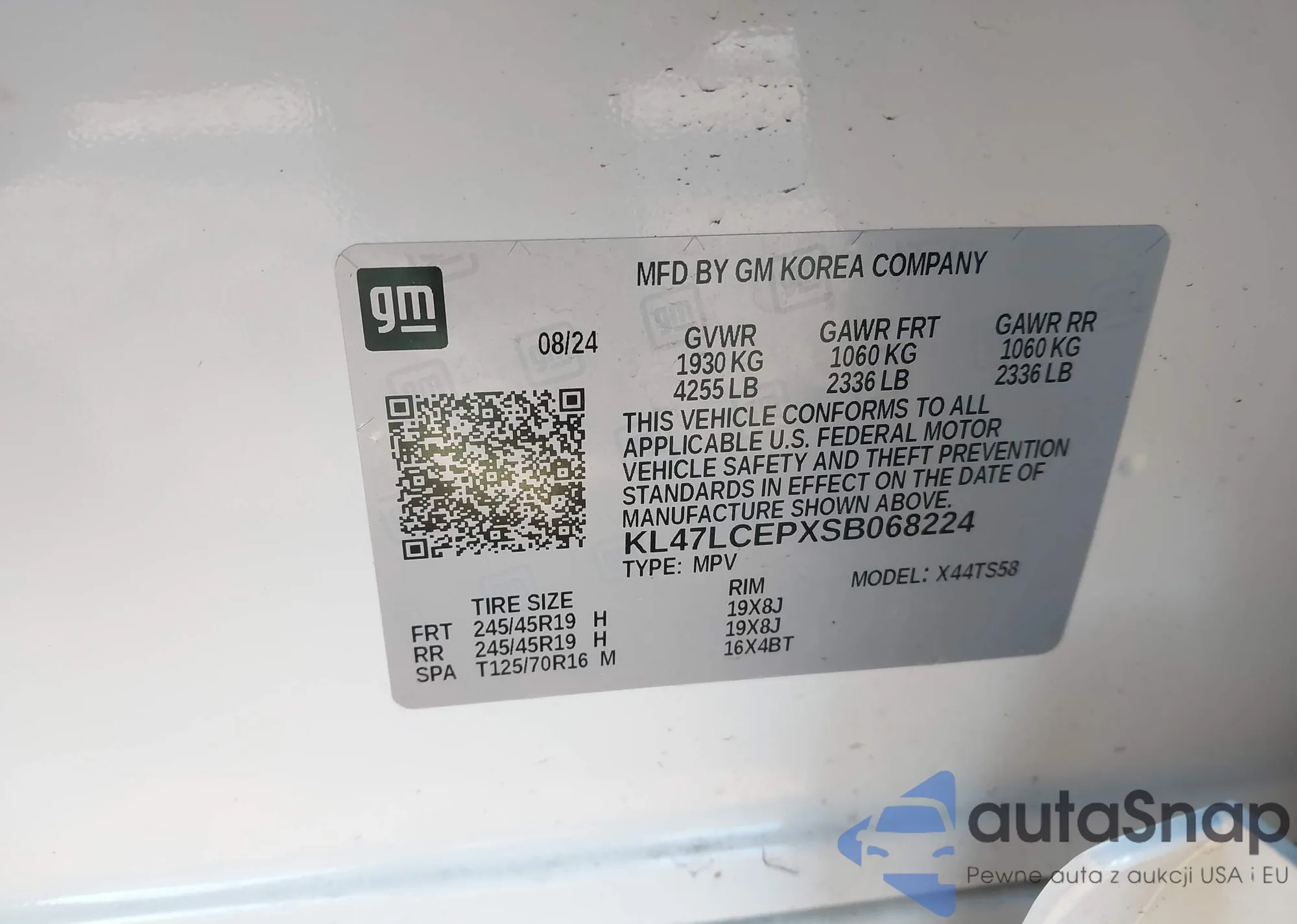 LOT: 44221907 VIN: KL47LAEP8SB049708