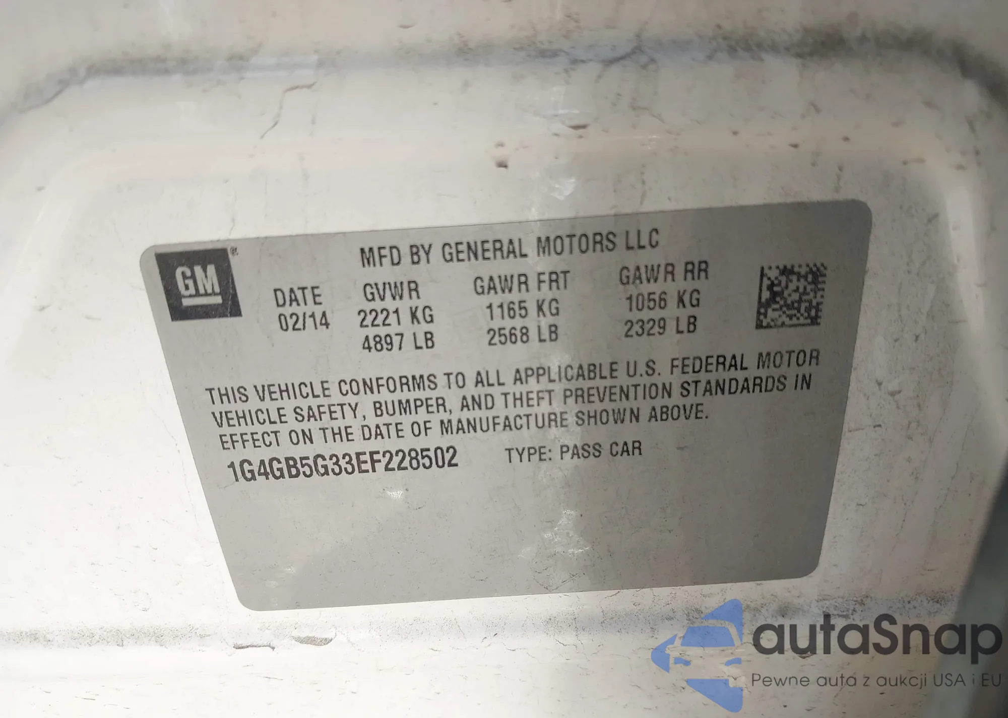 LOT: 43961725 VIN: 1G4GB5G33EF228502