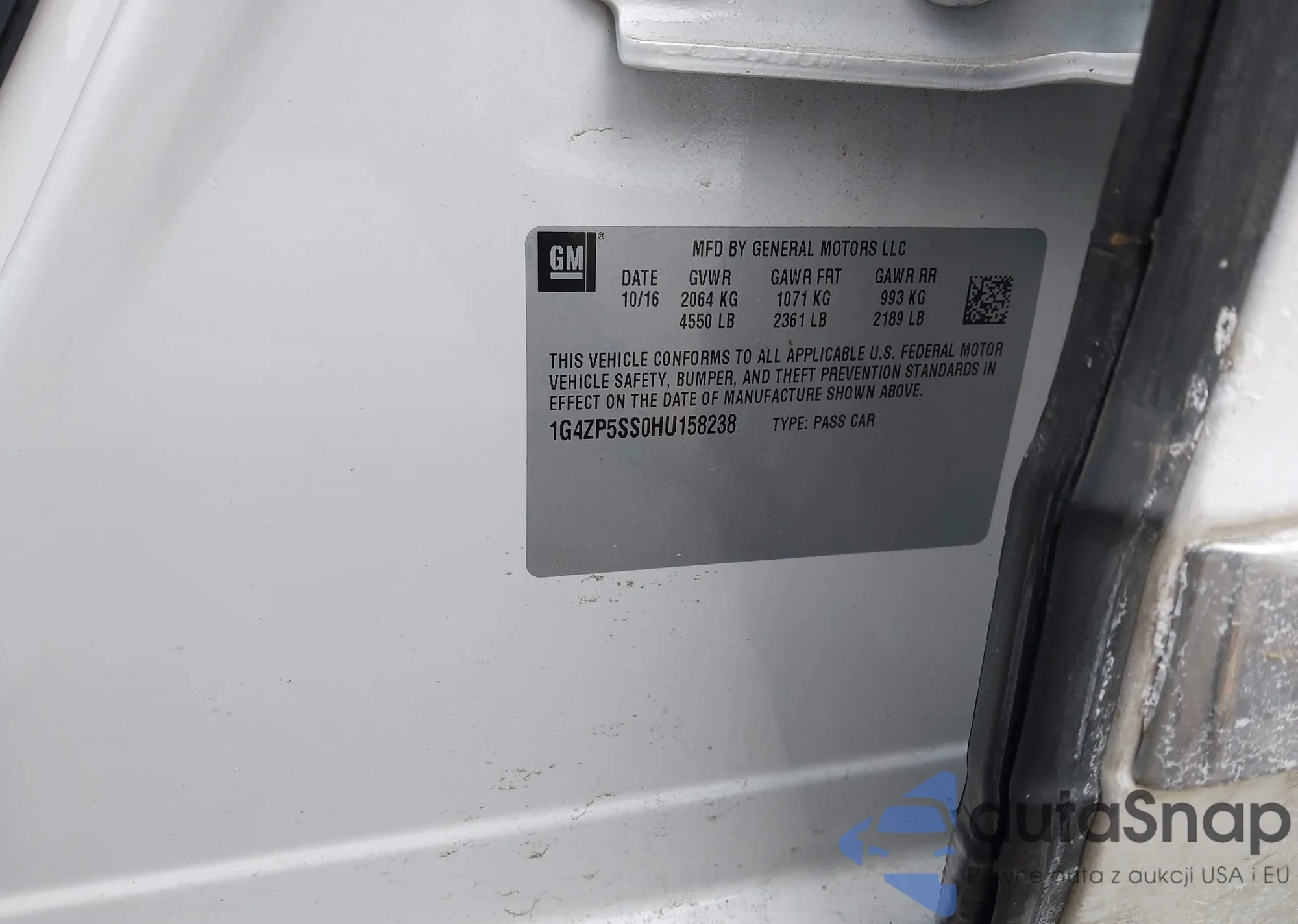 • VIN 1G4ZP5SS0HU158238