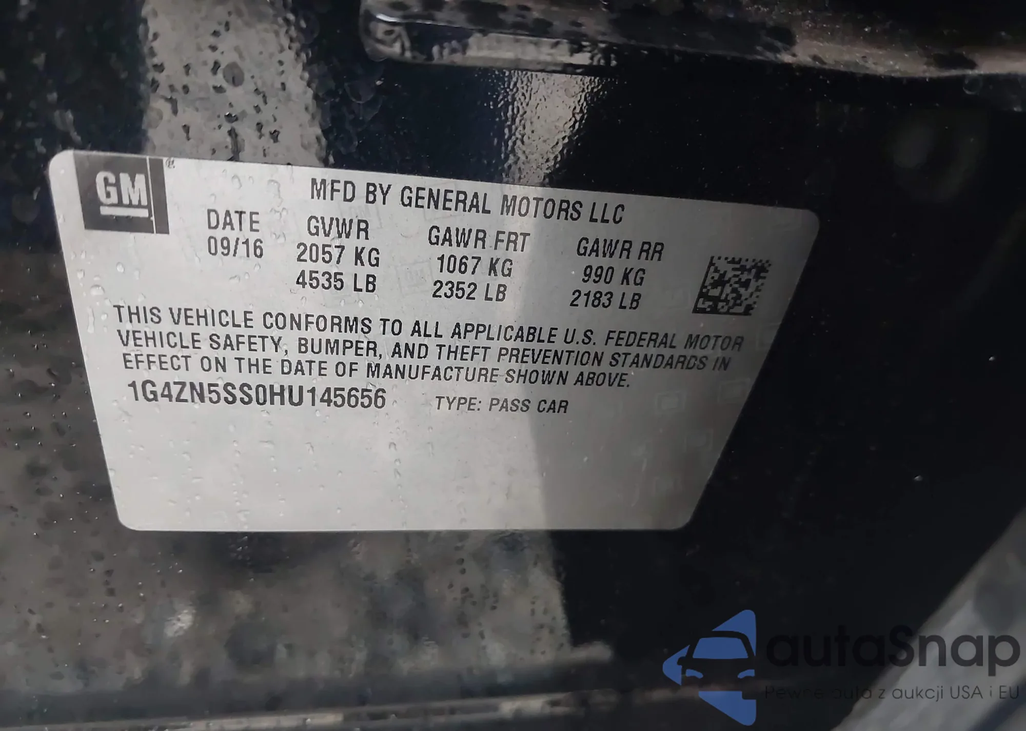 • VIN 1G4ZN5SS0HU145656
