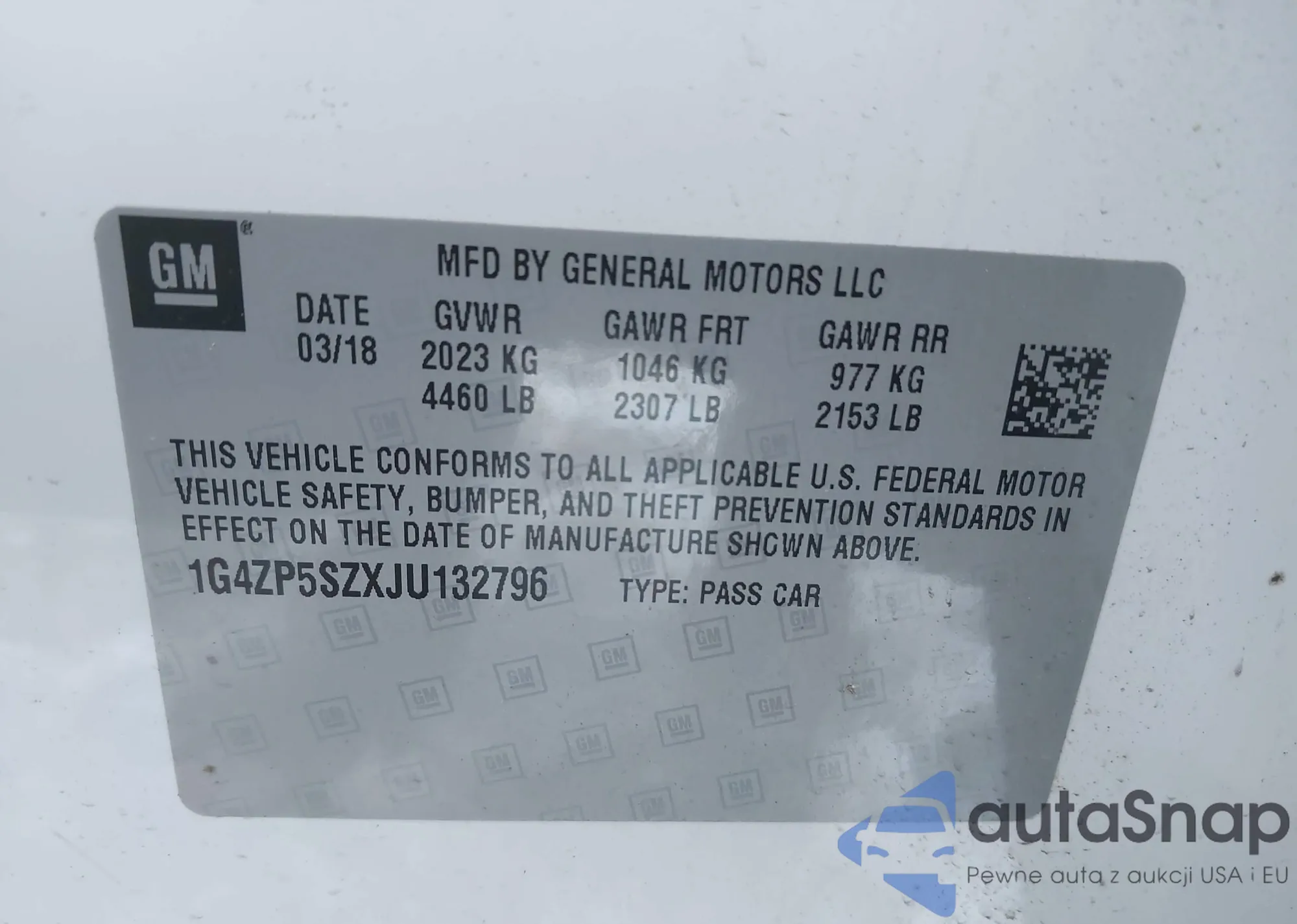 • VIN 1G4ZP5SZXJU132796