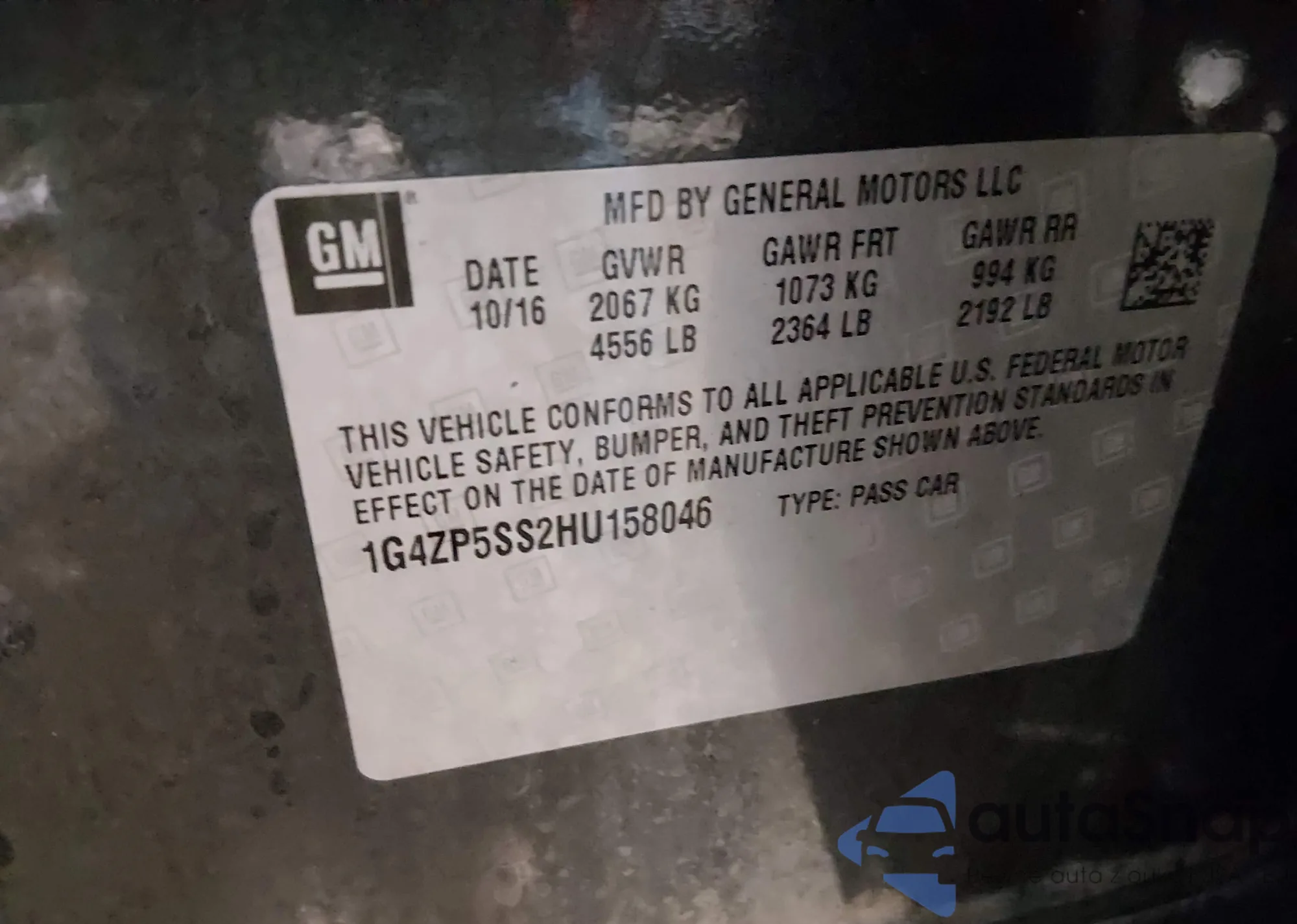 • VIN 1G4ZP5SS2HU158046