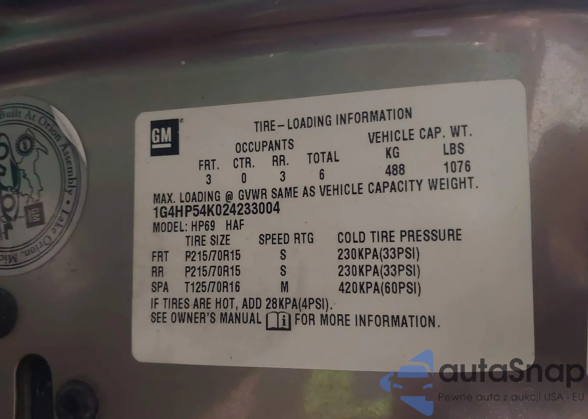 • VIN 1G4HP54K024233004