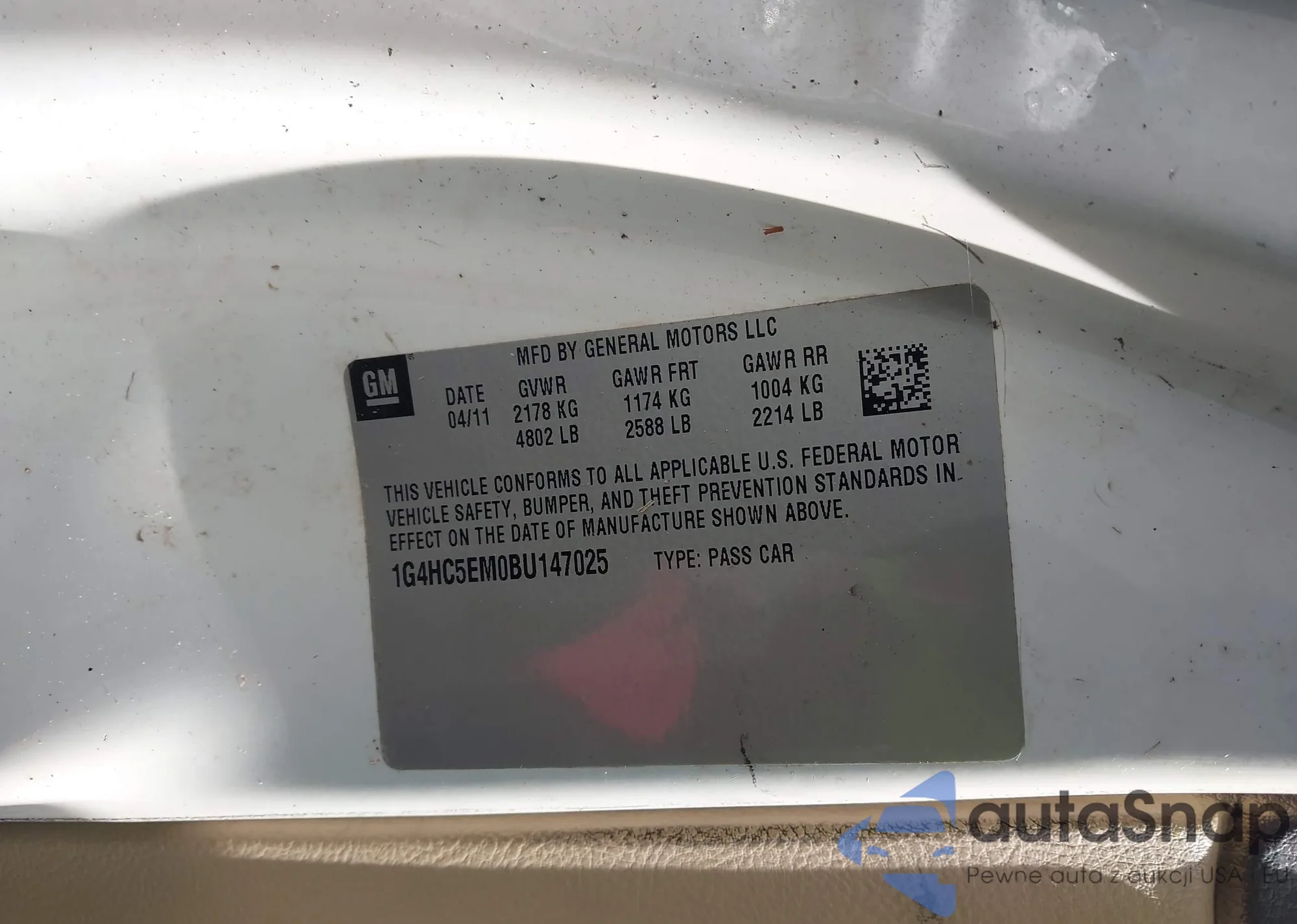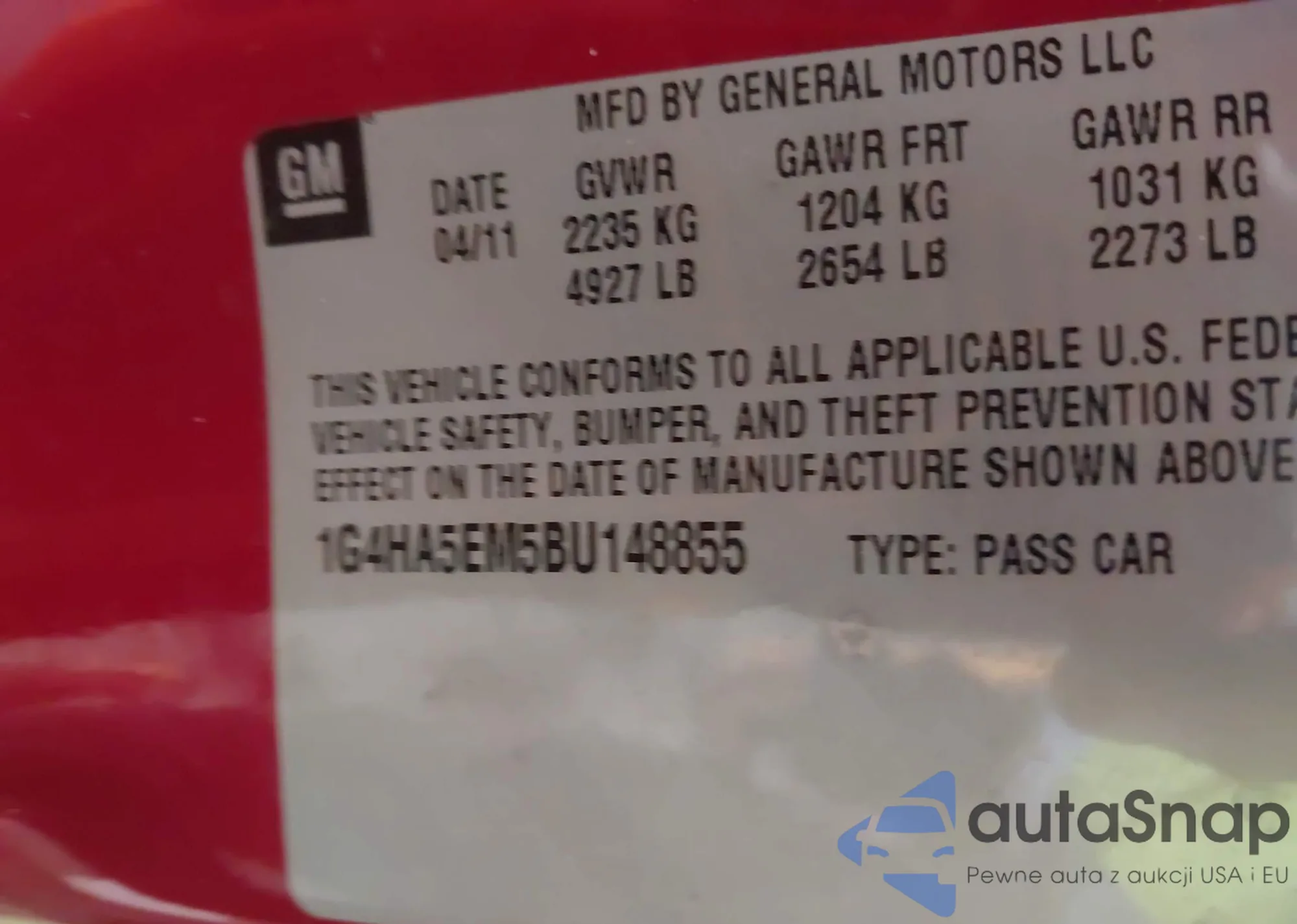 • VIN 1G4HC5EM0BU147025