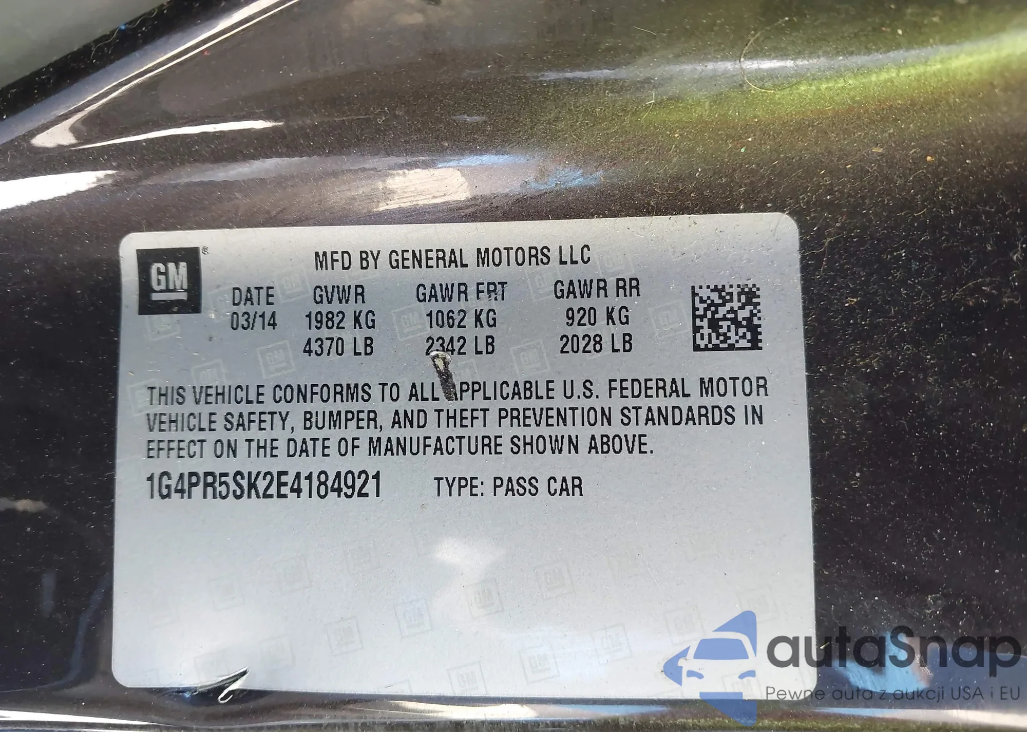 LOT: 44278081 VIN: 1G4PR5SK2E4184921