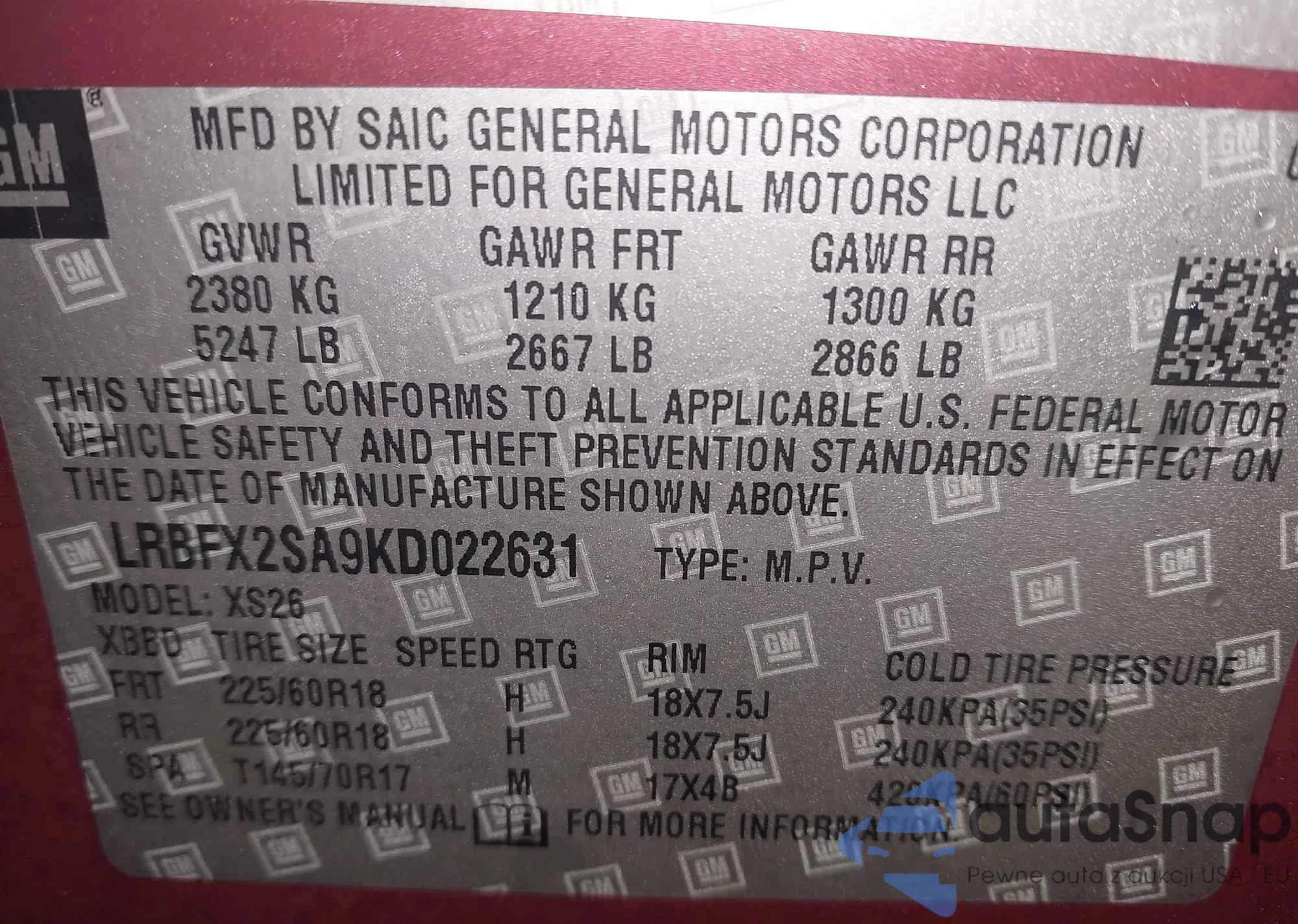 • VIN KL47LBE27RB202244