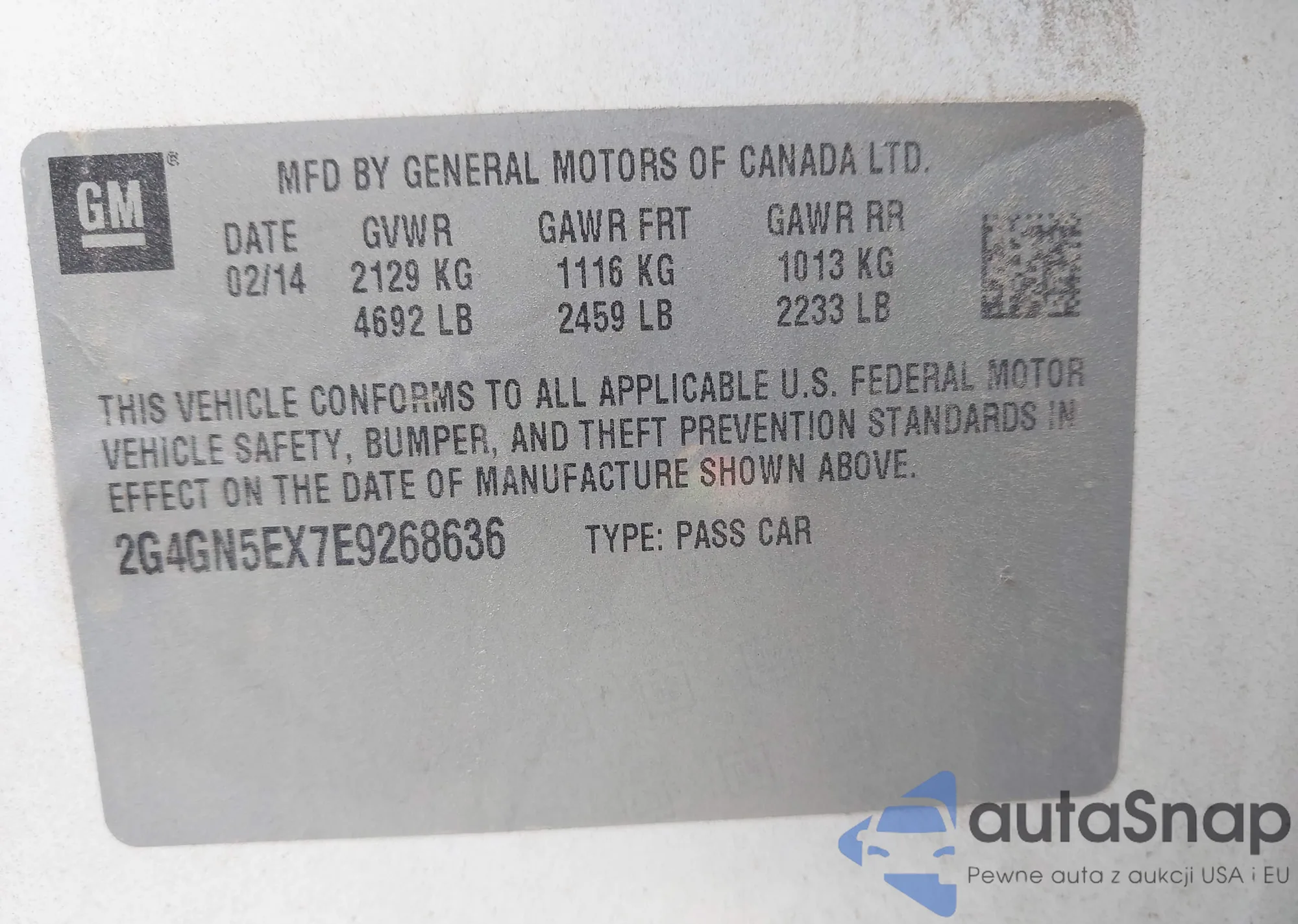 • VIN 2G4GN5EX7E9268636