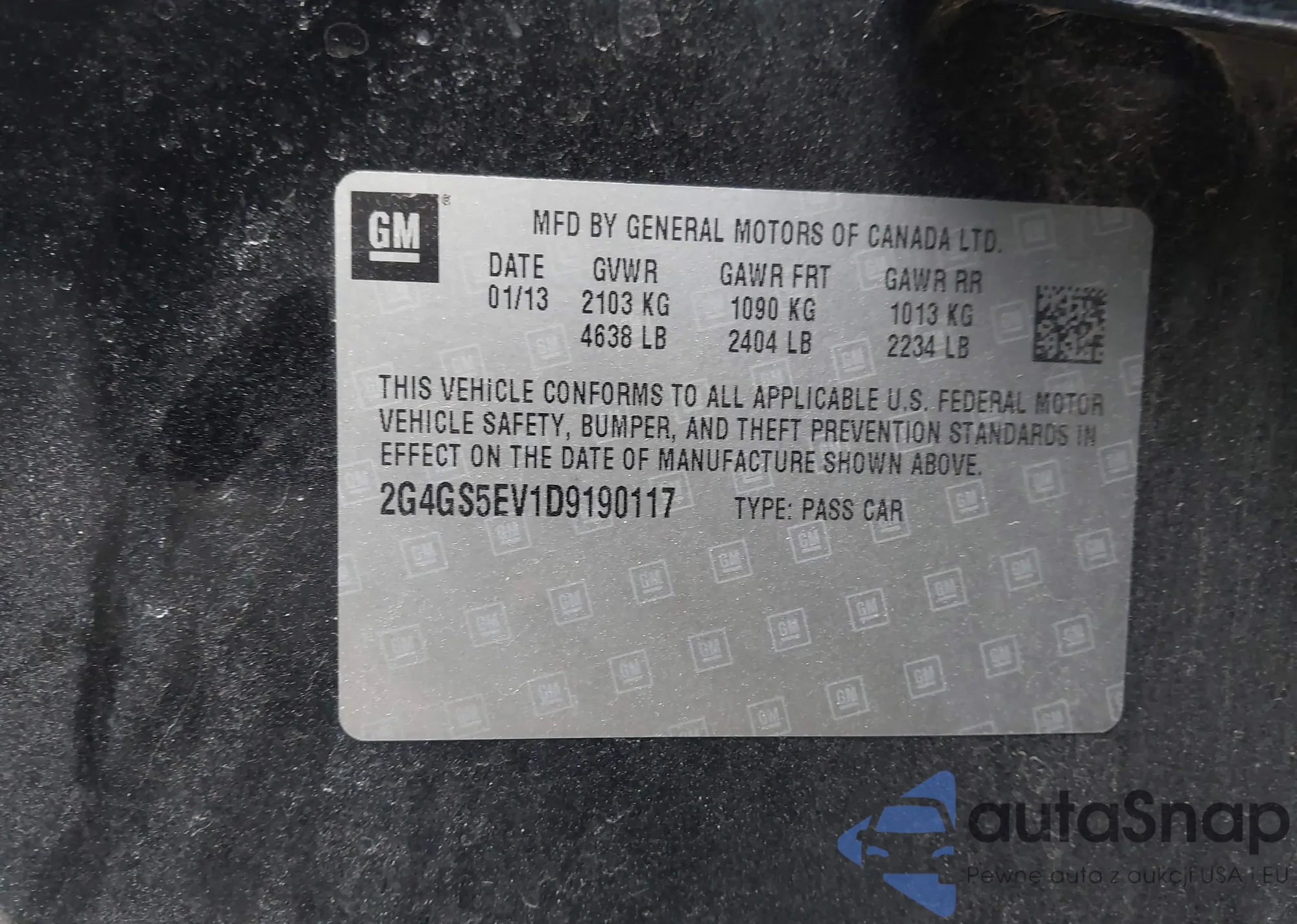 • VIN 2G4GS5EV1D9190117