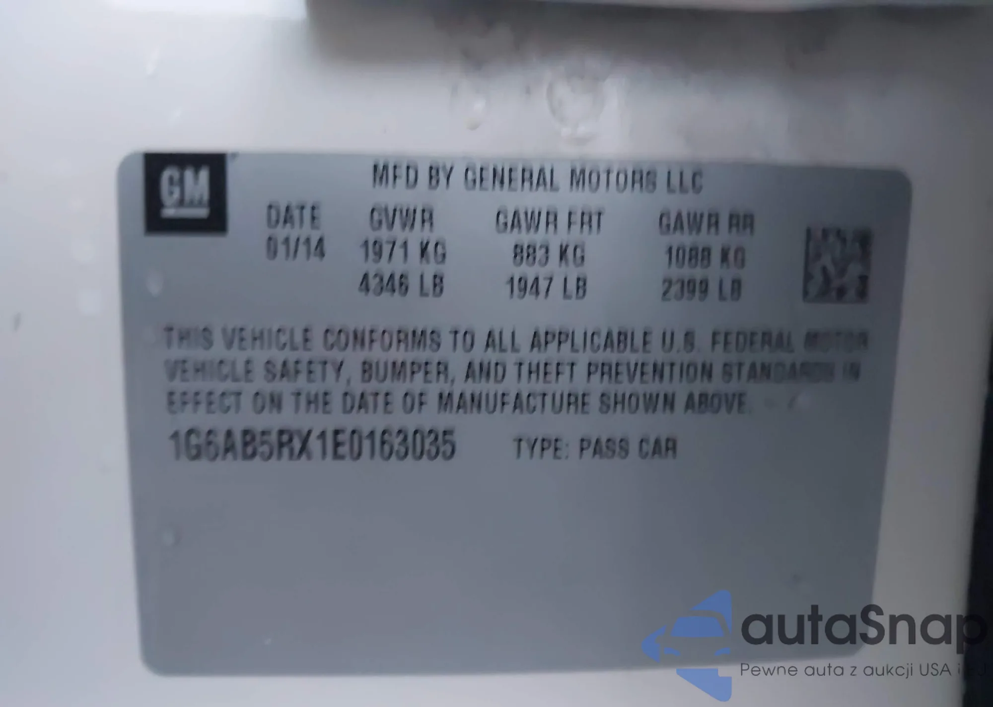 • VIN 1G6AB5RX1E0163035