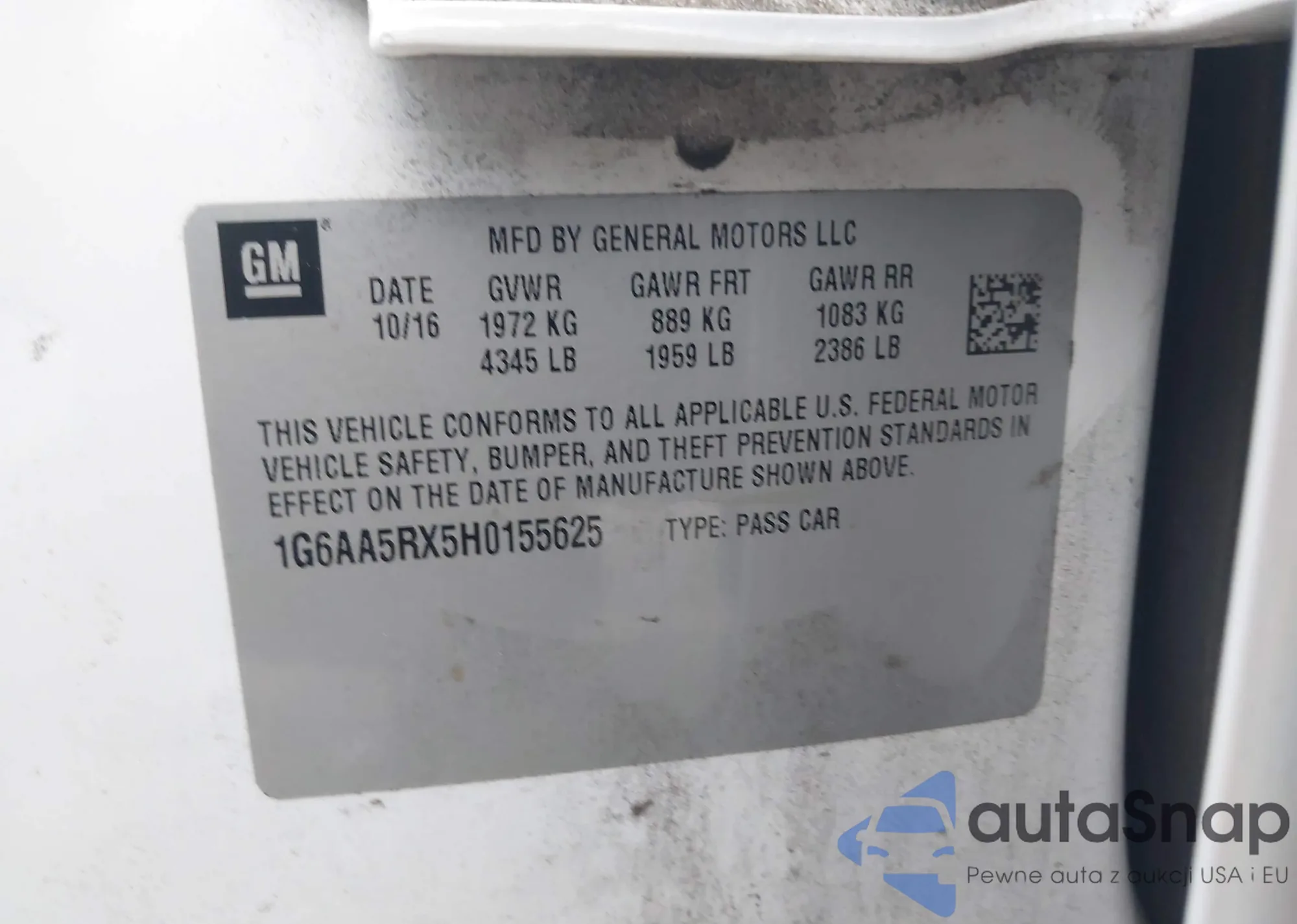 • VIN 1G6AA5RX5H0155625