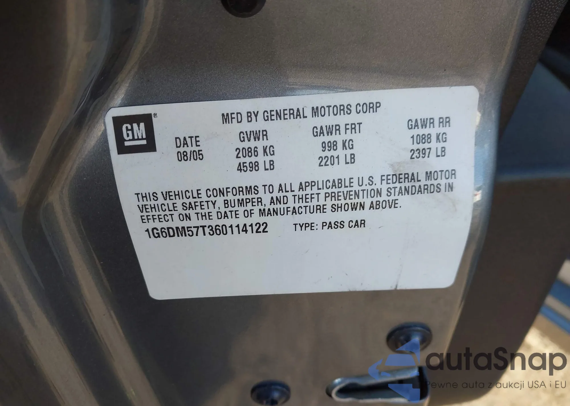 • VIN 1G6DM57T360114122