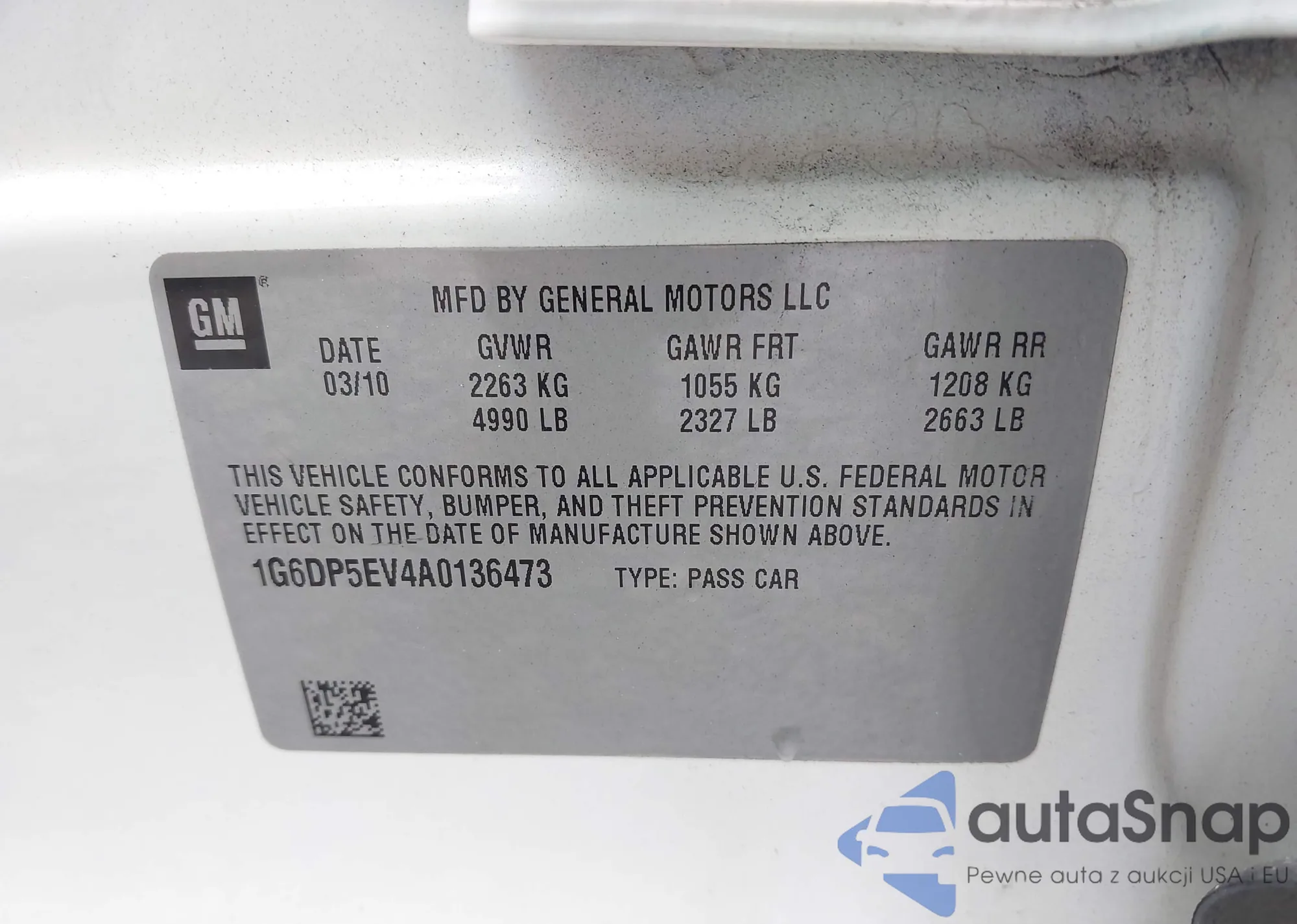 • VIN 1G6DP5EV4A0136473