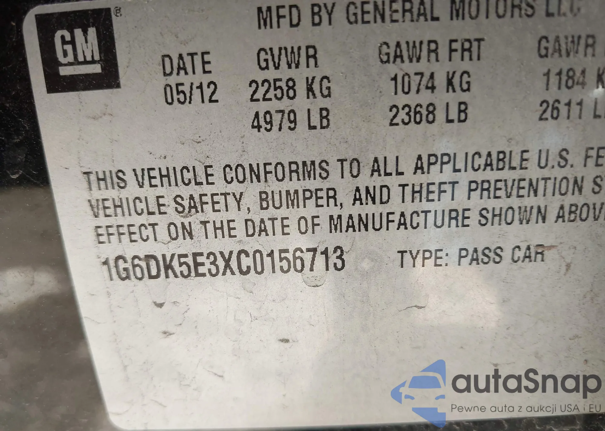 • VIN 1G6DK5E3XC0156713