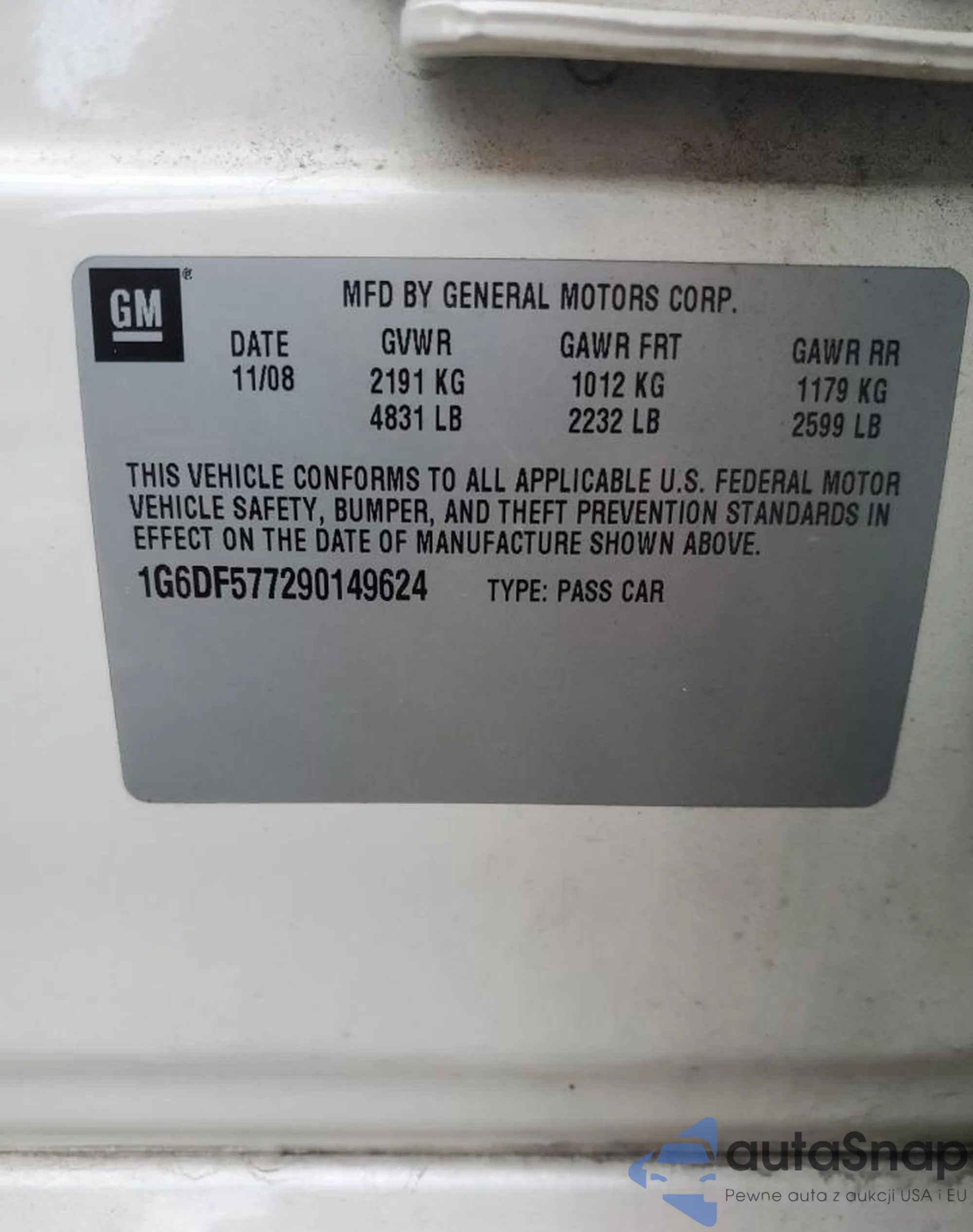 • VIN 1G6DF577290149624
