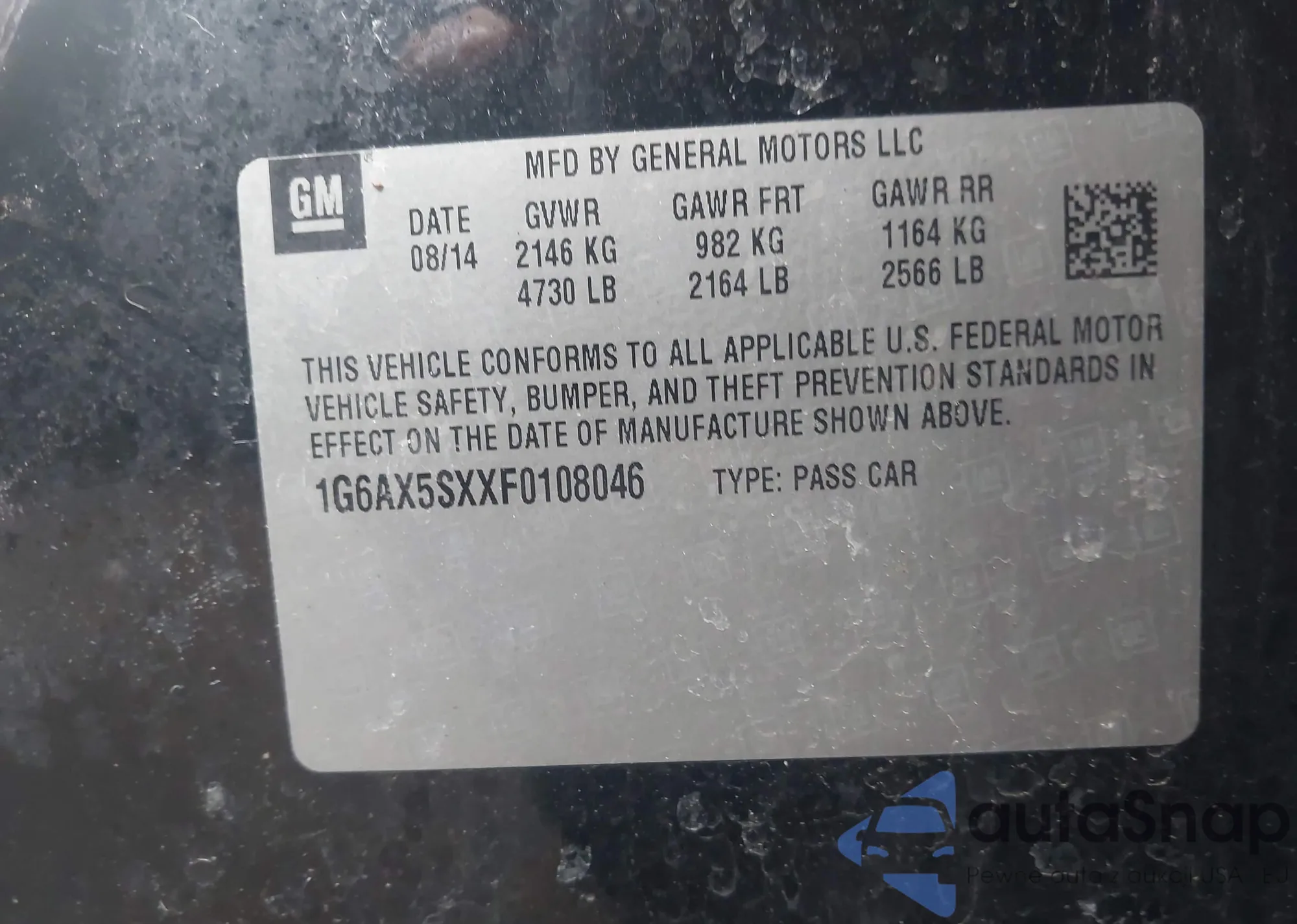 • VIN 1G6AX5SXXF0108046