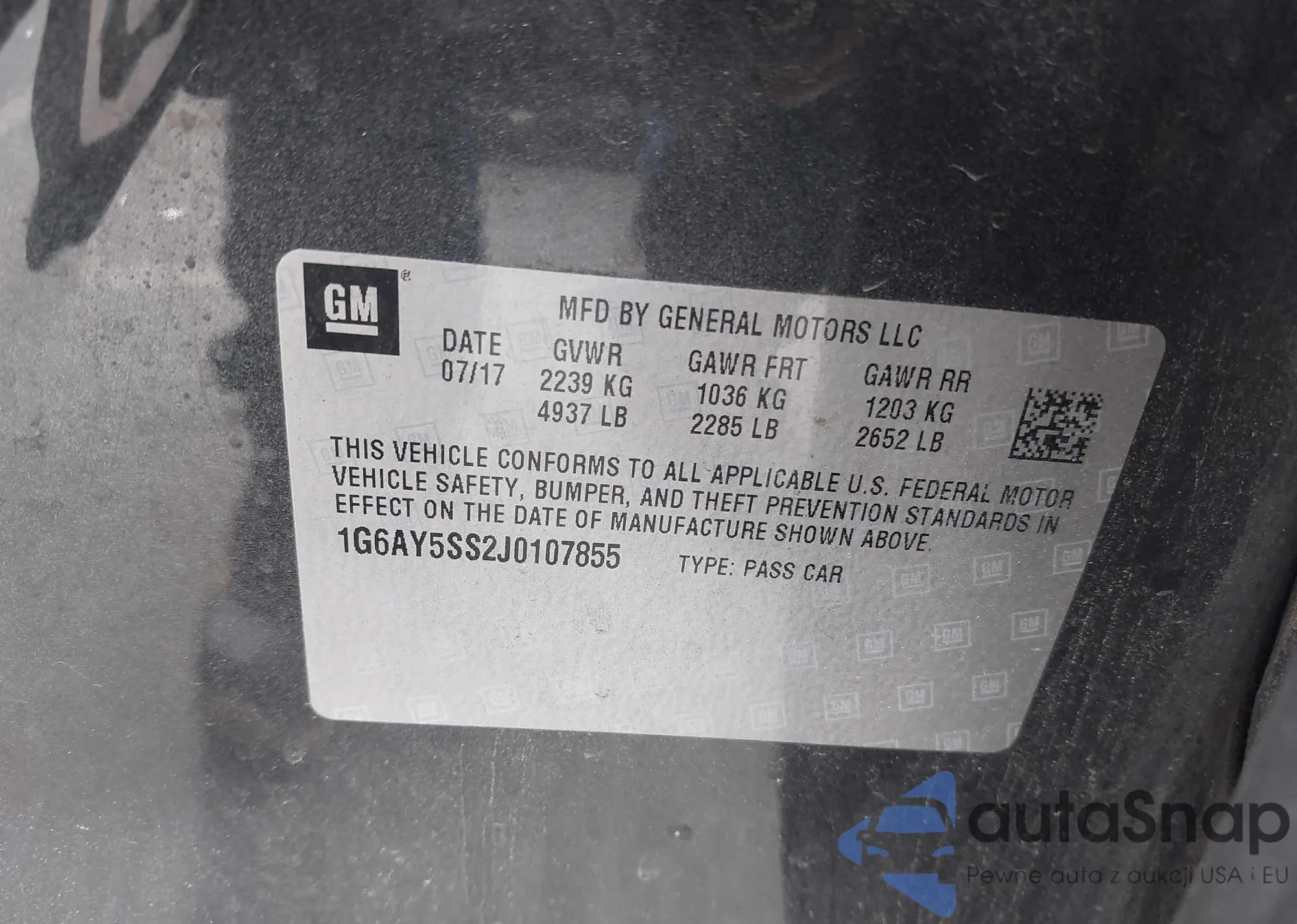 • VIN 1G6AY5SS2J0107855