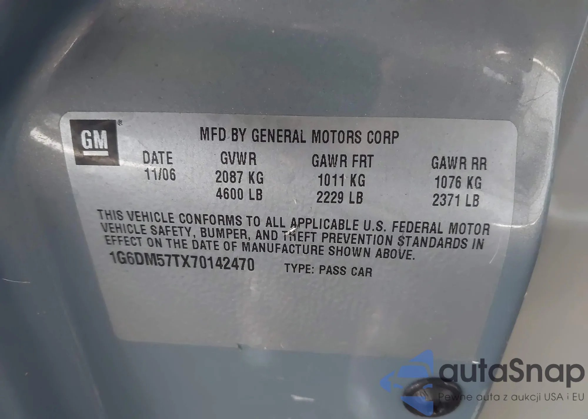 • VIN 1G6DM57TX70142470