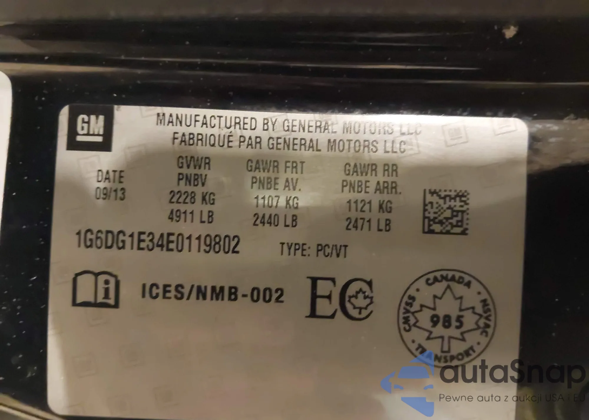 • VIN 1G6DG1E34E0119802