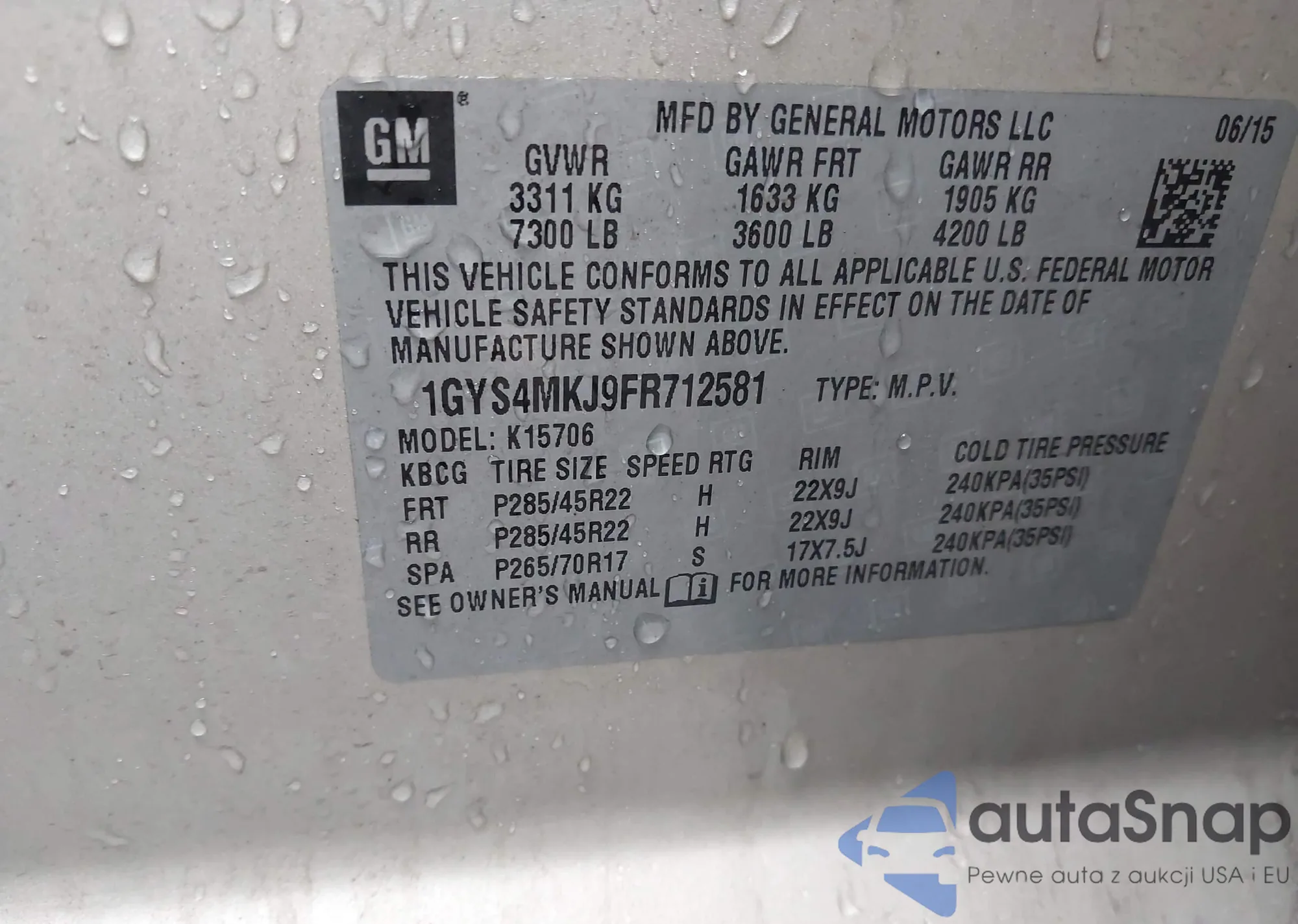 LOT: 44009095 VIN: 1GYS4MKJ9FR712581