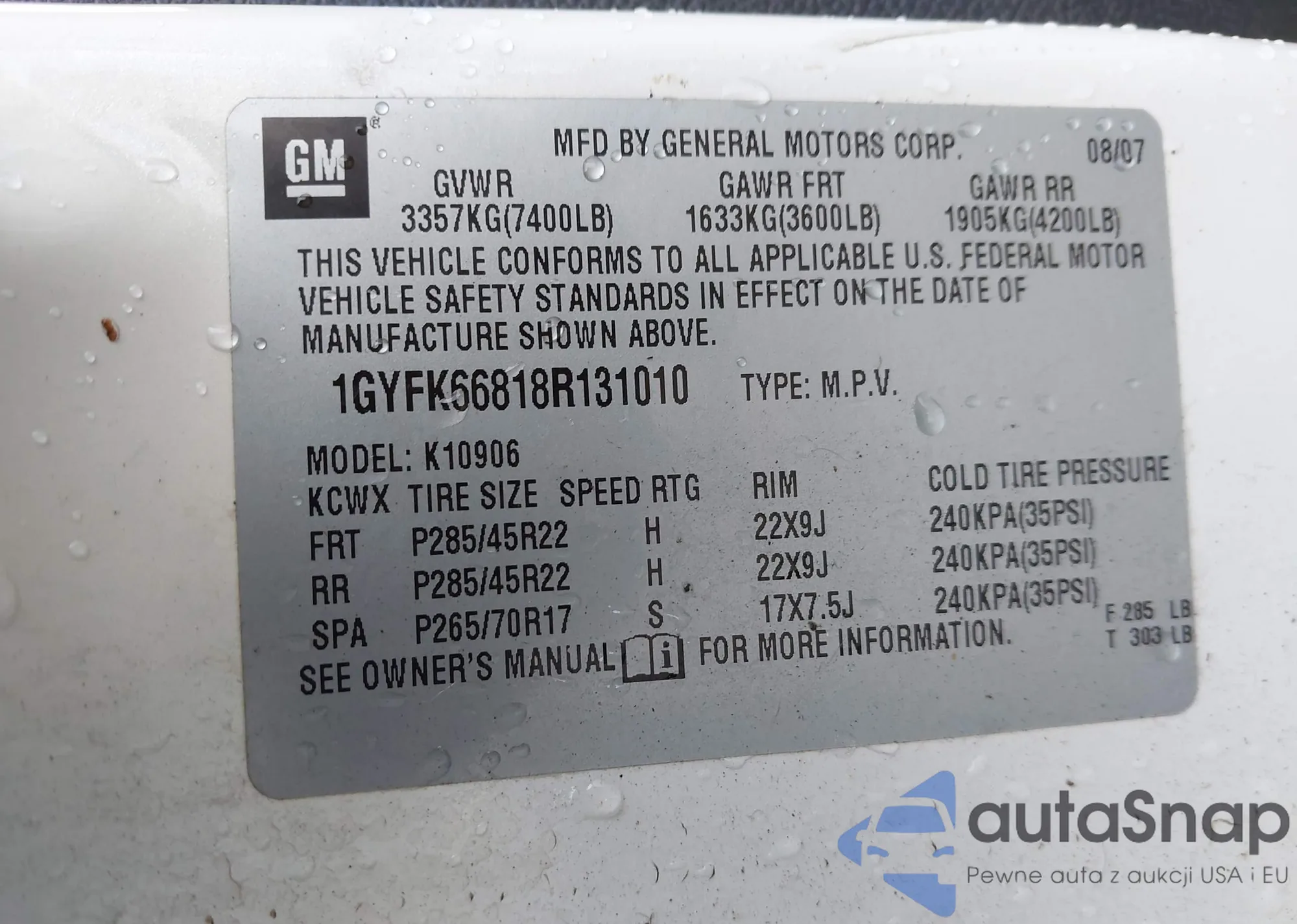 LOT: 44102186 VIN: 1GYFK66818R131010