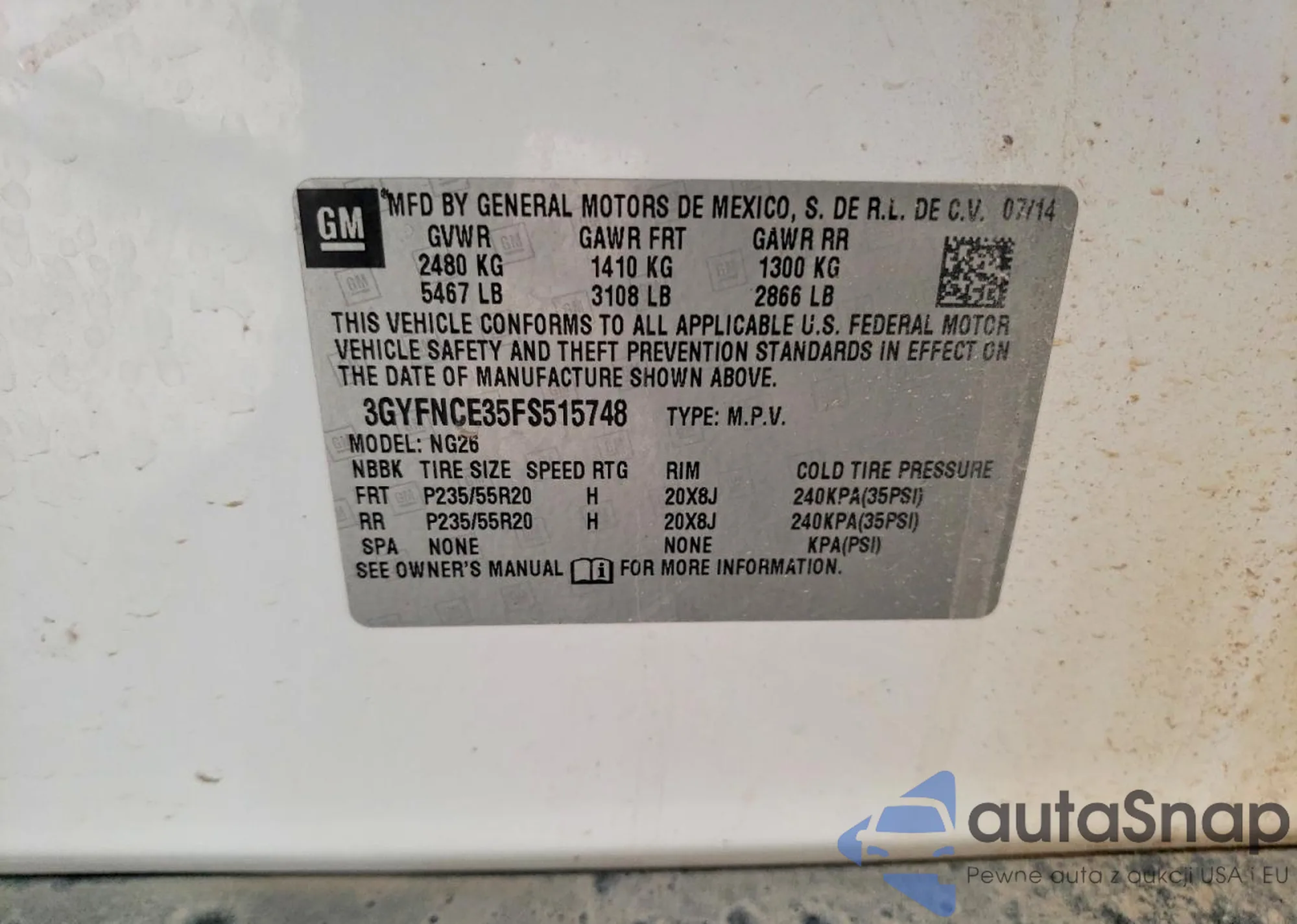 • VIN 3GYFNCE35FS515748