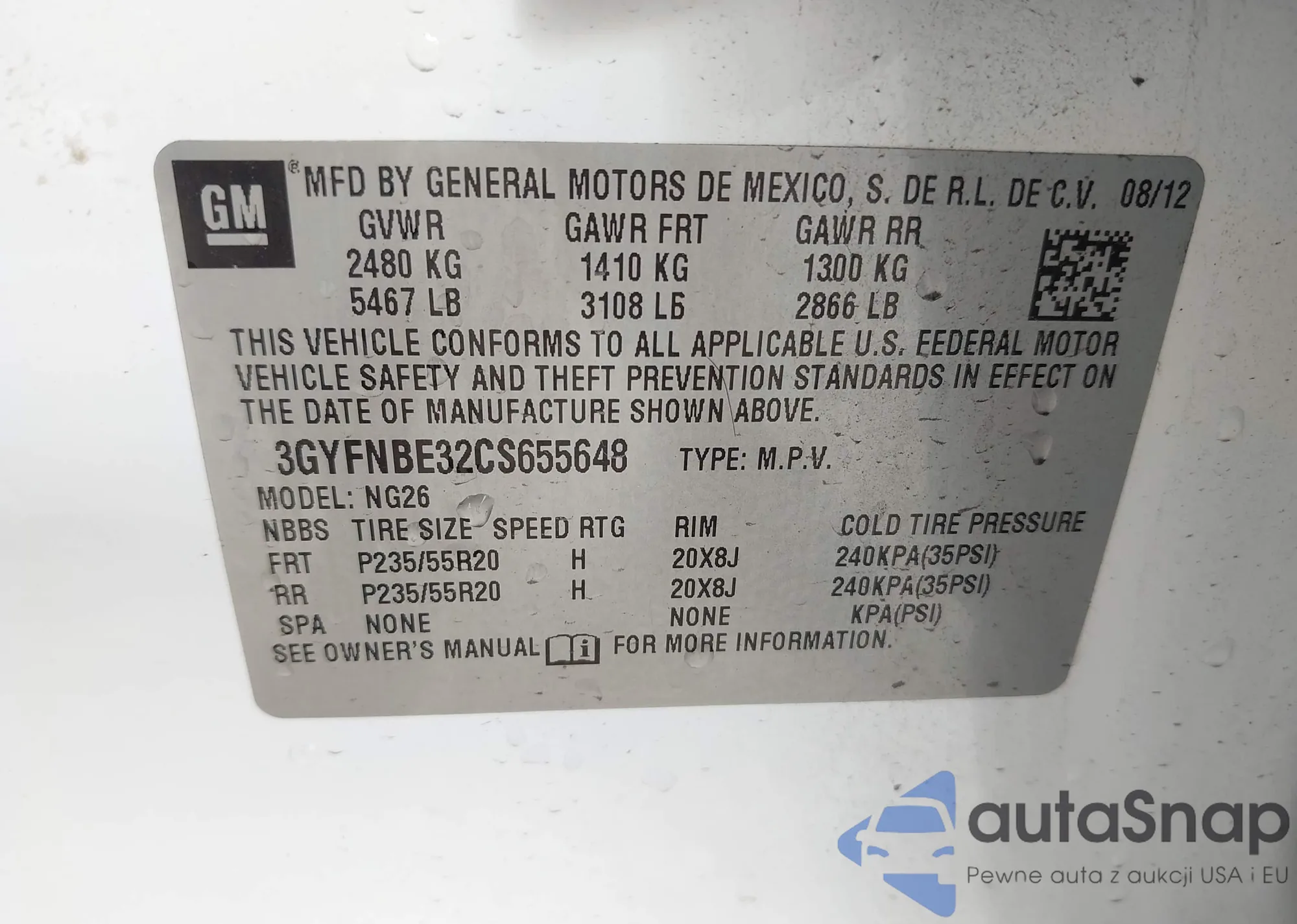 LOT: 44186672 VIN: 3GYFNAE38CS513606