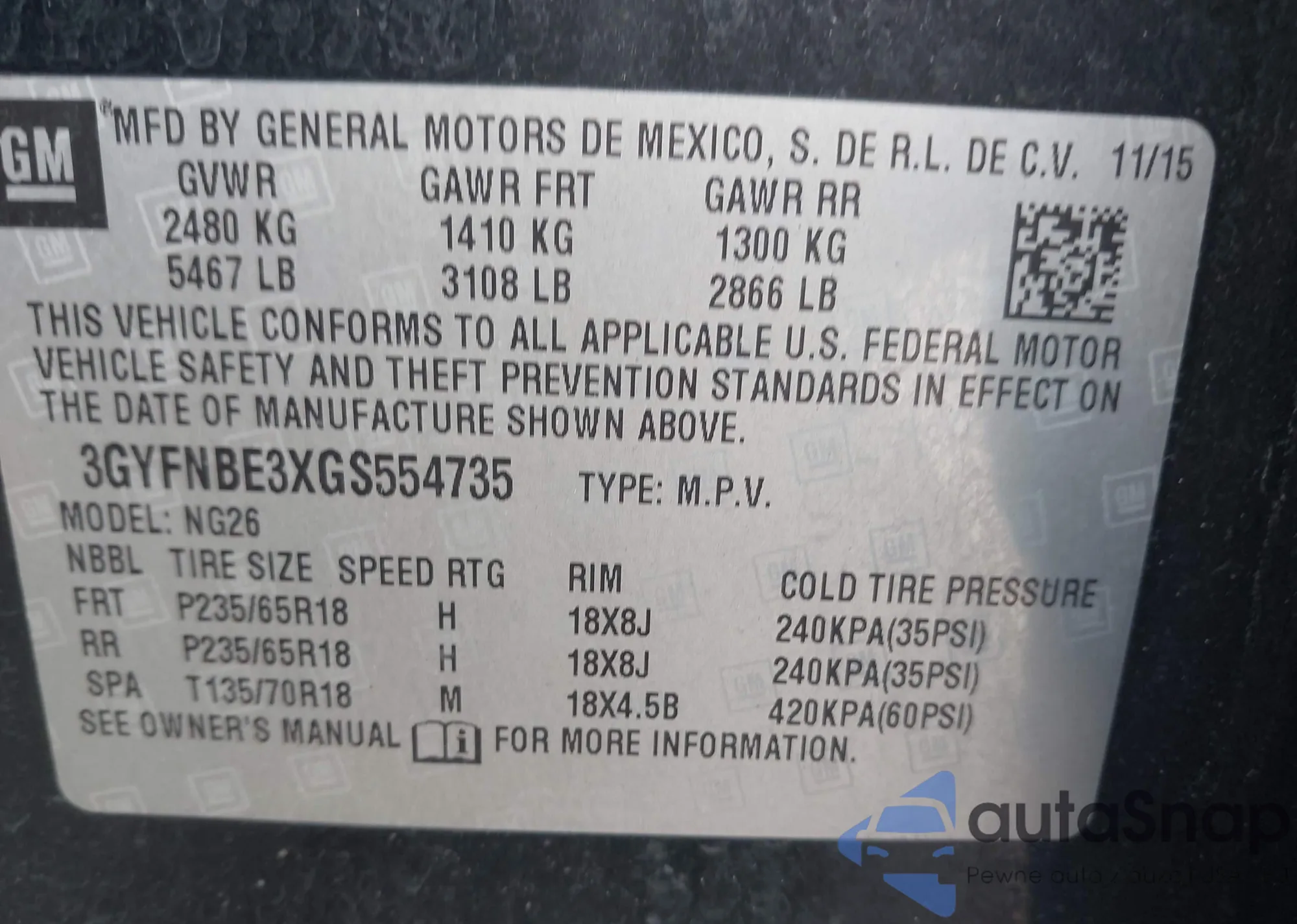 • VIN 3GYFNBE3XGS554735