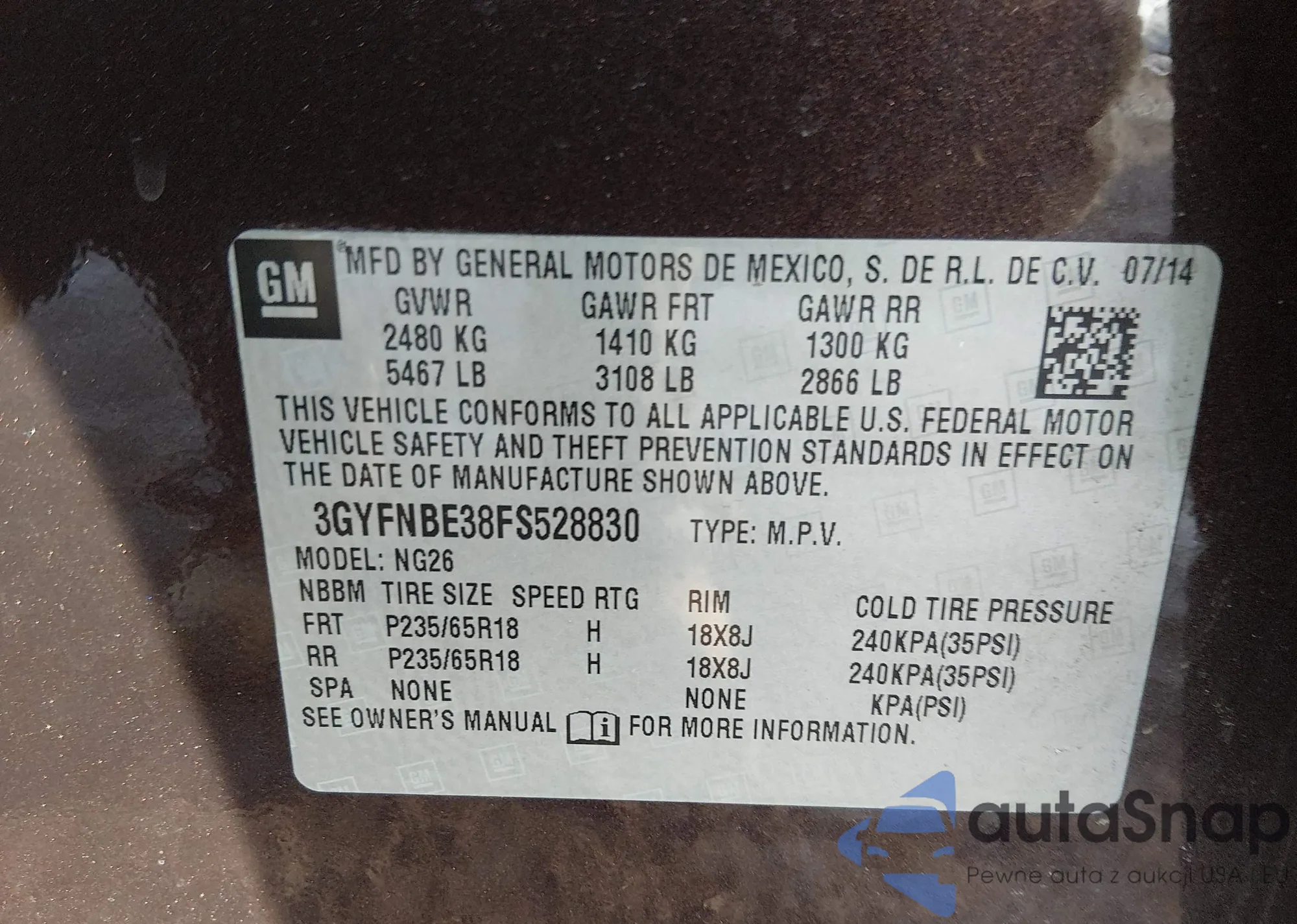 LOT: 44296134 VIN: 3GYFNBE38FS528830
