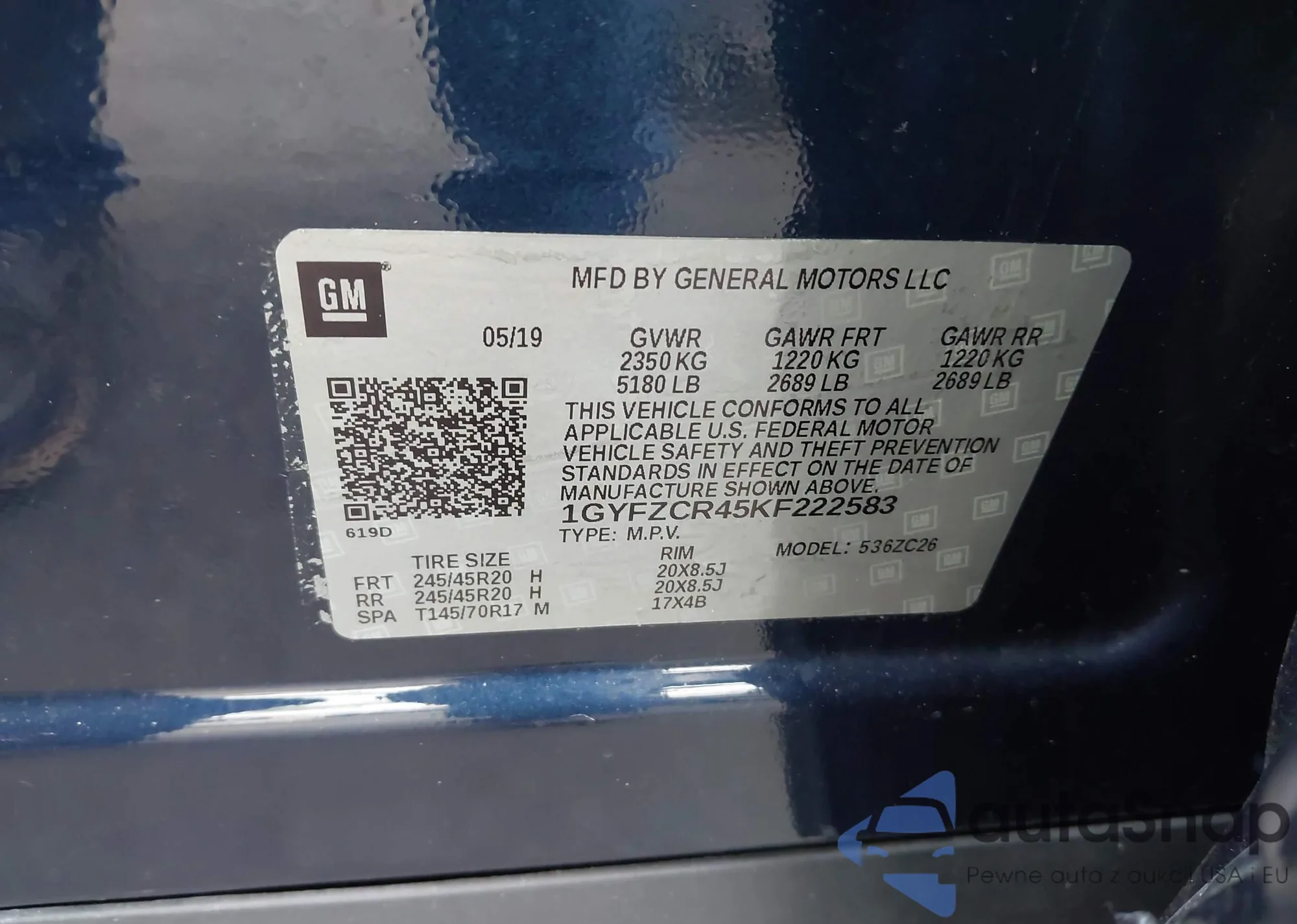 • VIN 1GYFZCR45KF222583