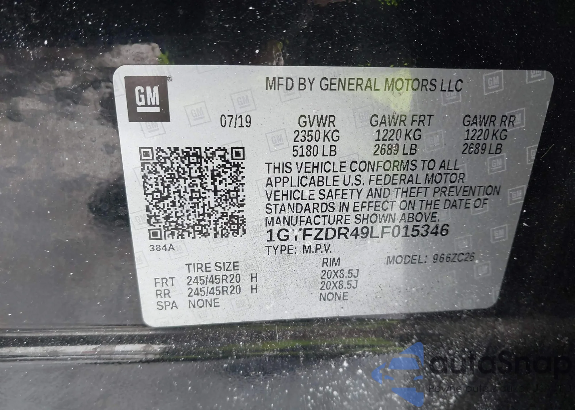 LOT: 44258390 VIN: 1GYFZDR49LF015346