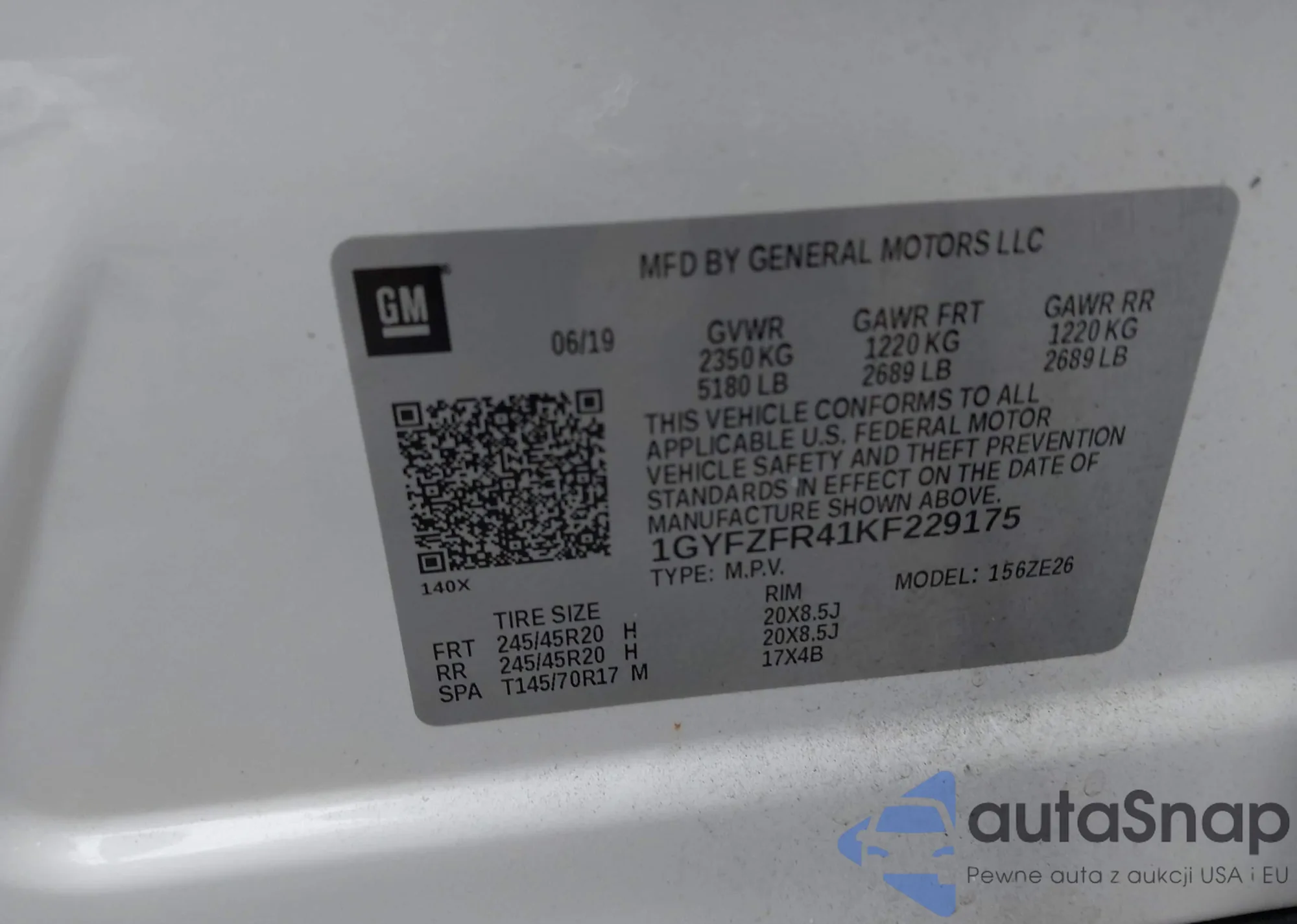 LOT: 43846744 VIN: 1GYFZFR41KF229175